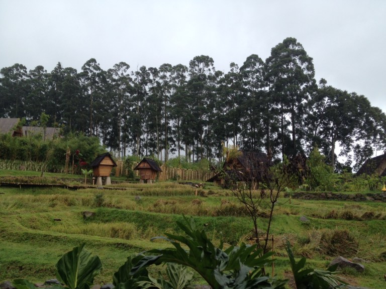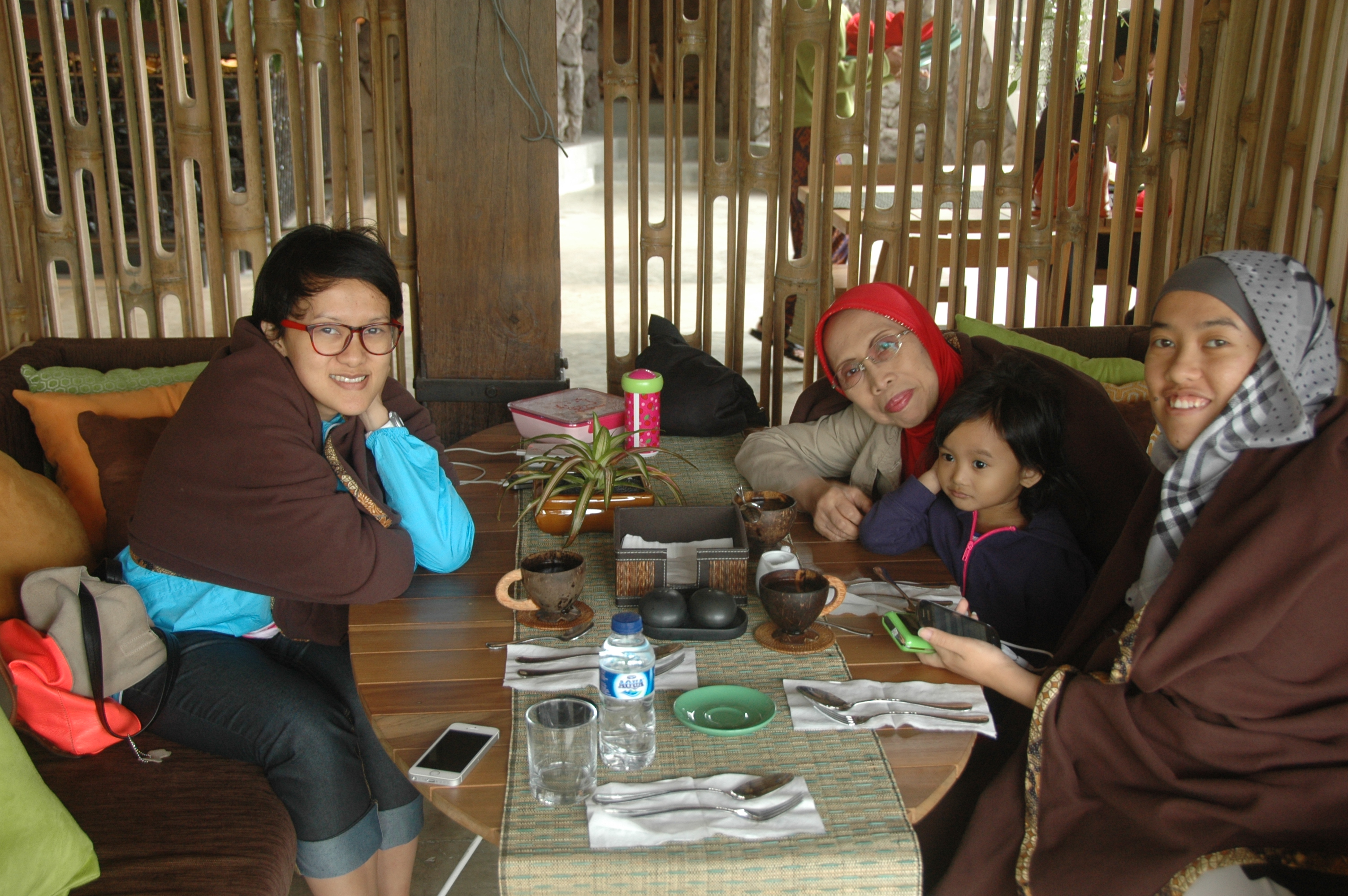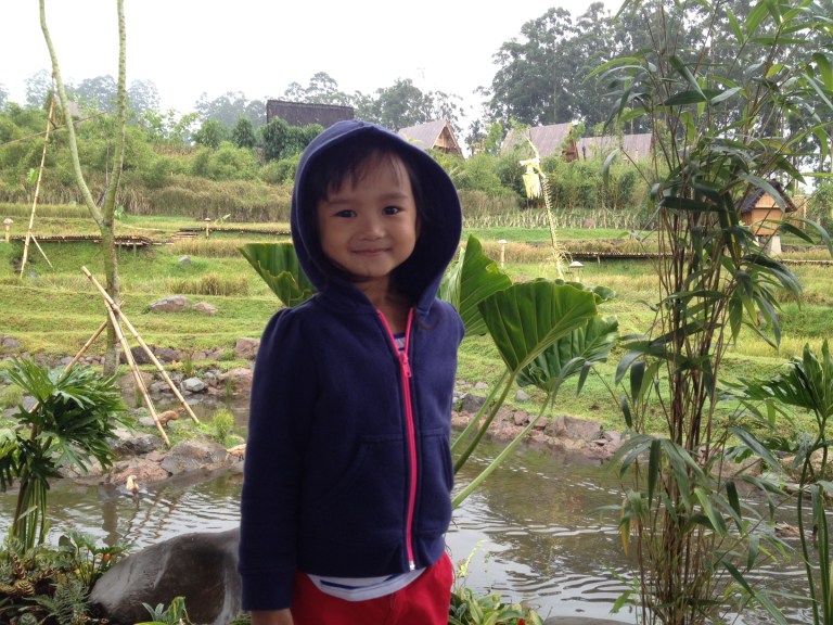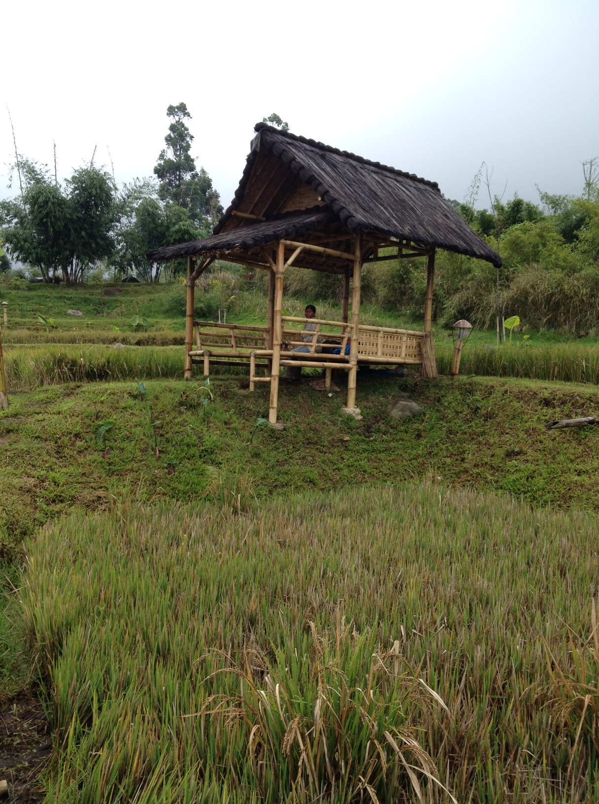 Ga kerasa, udah jam 3 sore aja. Sebenernya pengen banget menghabiskan waktu sepanjang hari di tempat yang luasnya 15 hektar ini.  Tadinya sih pengen berburu sunset, tapi karena cuaca tak menentu, kita menyerah hehe .. Semoga pas dateng kesini lagi, kesampean liat sunset yang cakep 🙂 Sebelum sampai ke mobil, saya sempatkan untuk berjalan-jalan di sawah dekat area lobby. Seorang Ibu yang juga penduduk setempat sedang beristirahat di saungnya sambil menyapa kami dengan ramah 🙂