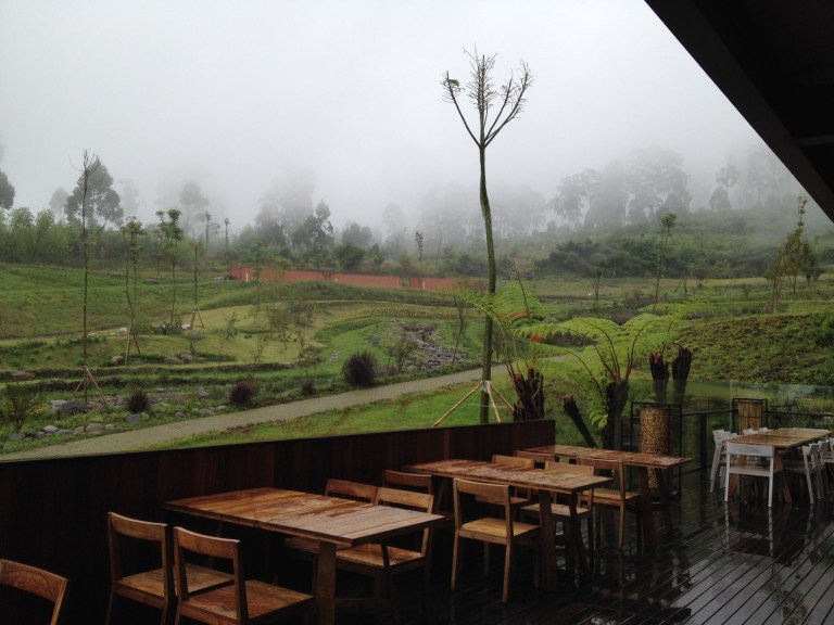 Sambil nunggu makanan dateng, saya memutuskan untuk berjalan-jalan keluar sebentar dan ternyata viewnya indah sekali! Rasanya setiap sudut pengen saya foto semua 🙂 Dari restoran, kita bisa lihat villa ekslusif Kampung Layung yang berada diatas danau buatan. Menurut informasi, villa ini baru akan dibuka akhir  Februari nanti.