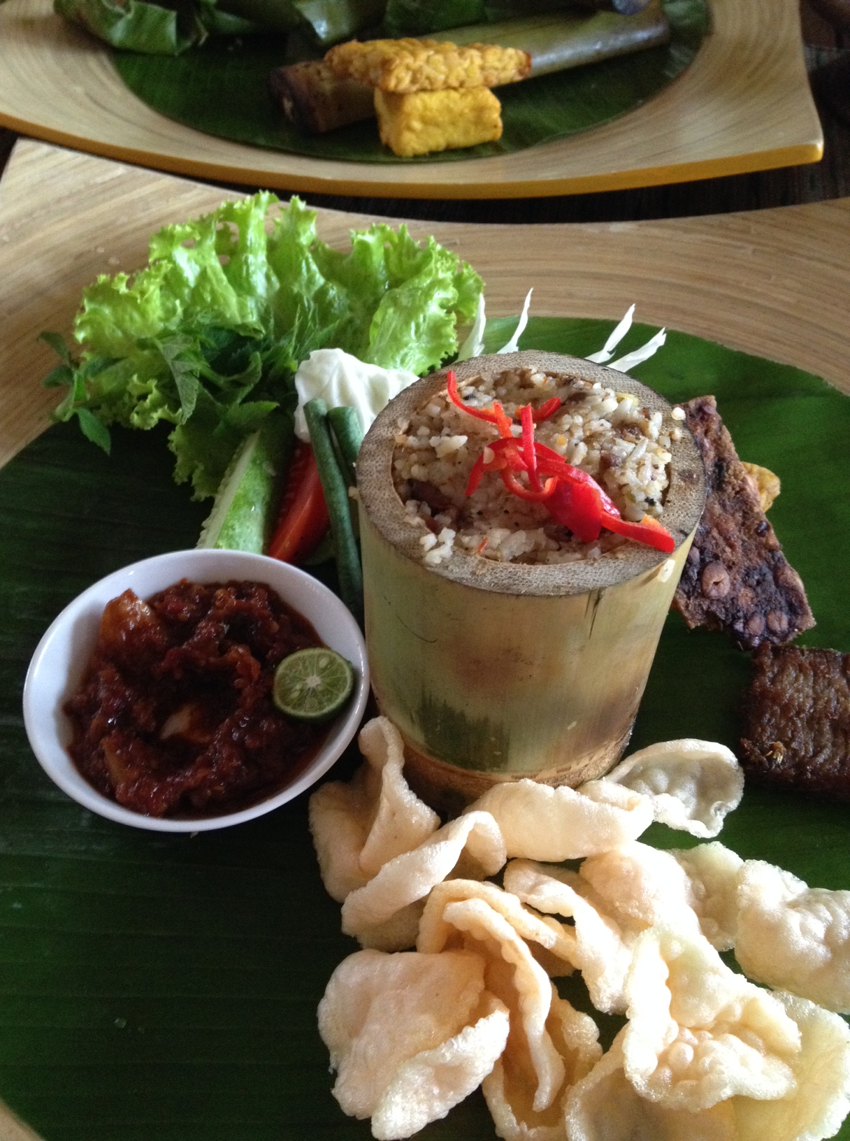 Villa ini mengingatkan saya pada Kampung Sampireun di Garut, yang juga berada diatas danau buatan. Tapi selalu suka dengan tempat-tempat kaya gini, soalnya mirip lokasi syuting Dawson’s Creek *apeu**astaga ketauan umurnya deh :p**abaikan*Nah karena makanan udah dateng, jadinya saya balik lagi ke kafe untuk menikmati Nasi tutug oncom *nomnom*. Oya, menu bebeknya juga boleh dicoba lho. Untuk kisaran harga makanannya mulai dari Rp 55.ooo keatas.