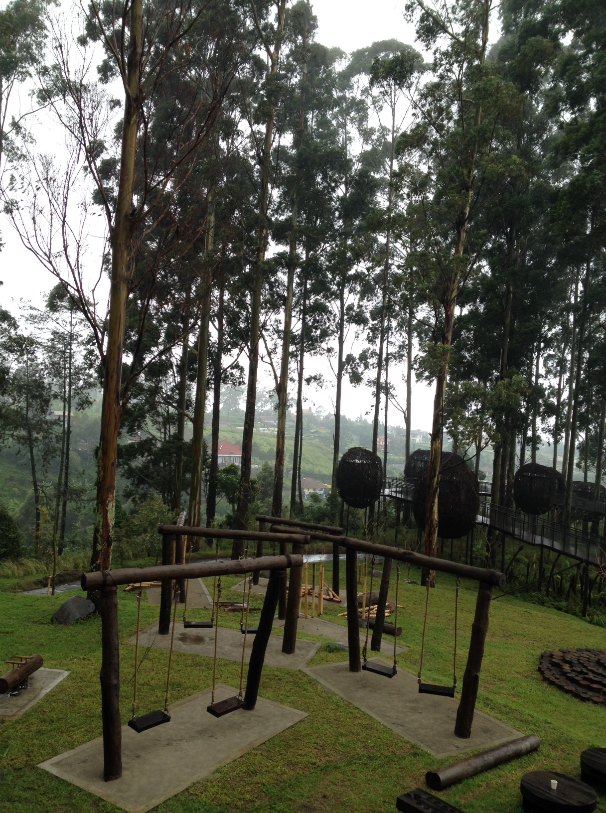 Masih di area yang sama, kita bisa liat ada arena bermain untuk anak. Ada ayunan dan jungkat jungkit dari kayu, juga ada tempat main congklak. Ga sempet dicobain sih, soalnya hujan datang dan pergi sesuka hati gitu kemarin. Sedetik hujan, sedetik berhenti dan begitu seterusnya hehe..Daaan yang ga kalah serunya, atau mungkin paling seru dari tempat ini adalah ada camping groundnya yang rencananya akan dibuka akhir Februari.