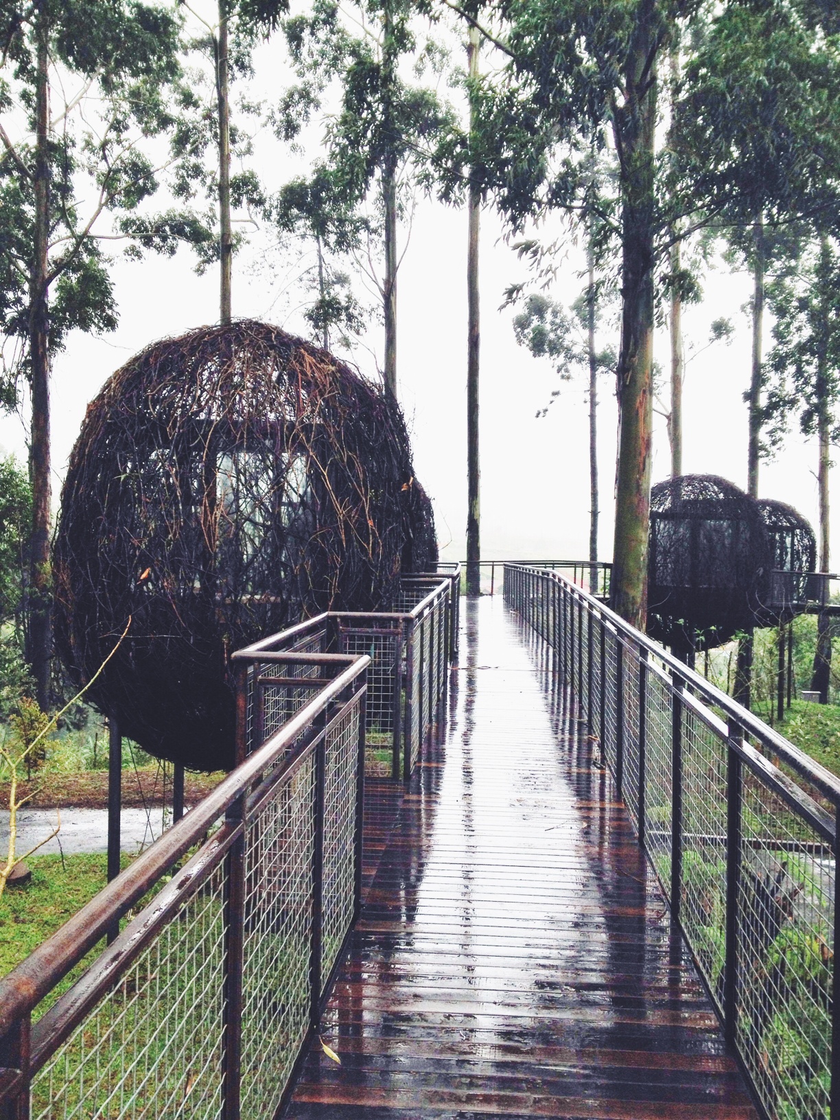 Ternyata pemandangan yang disuguhkan disini tak kalah menariknya. Kita bisa melihat tempat unik yang dibuat dari ranting menyerupai rumah burung, yang dinamakan Lutung Kasarung. Nantinya tempat ini bisa digunakan sebagai tempat bersantap sambil melihat pemandangan hutan yang indah. Seru ya? 🙂