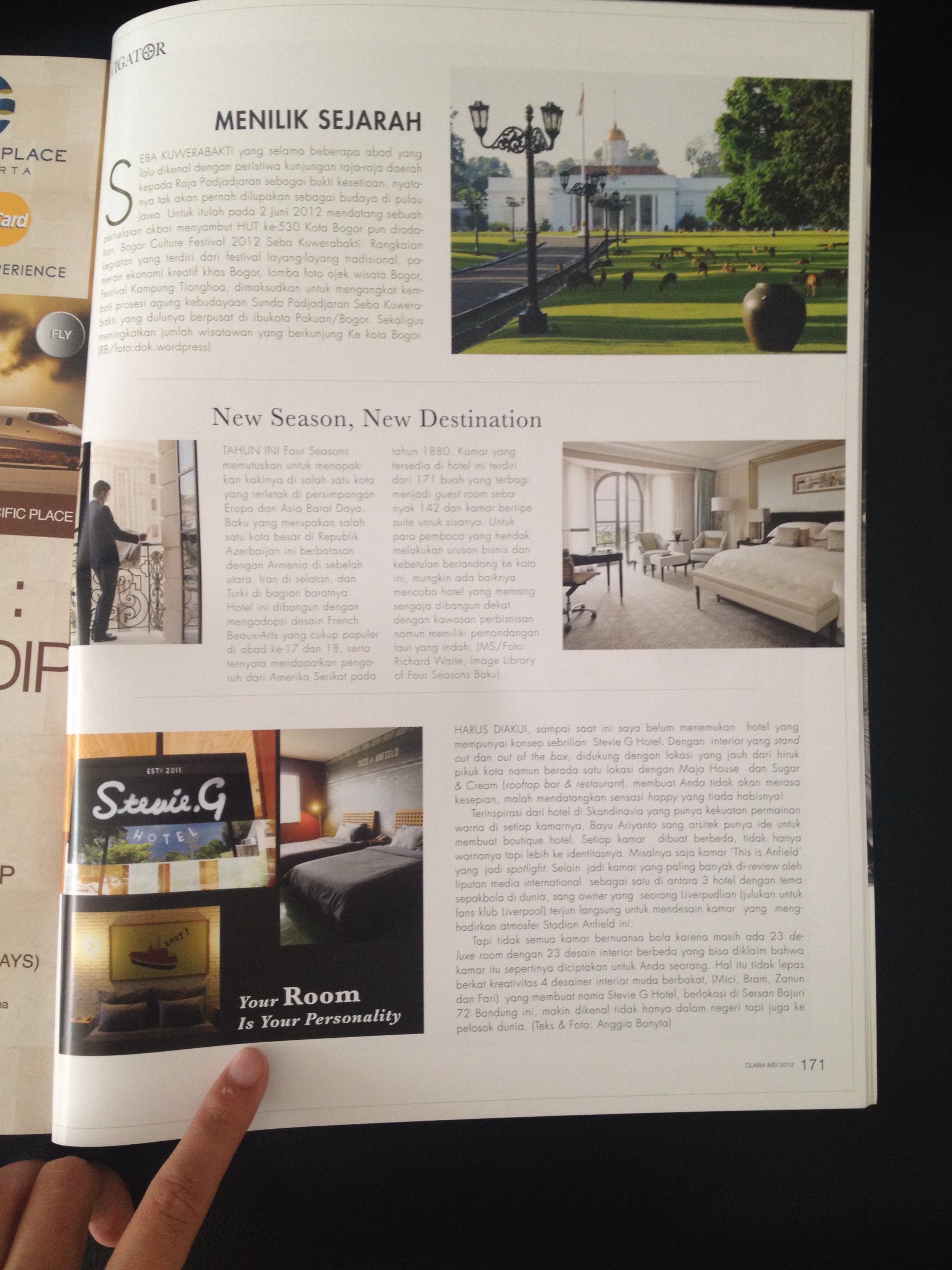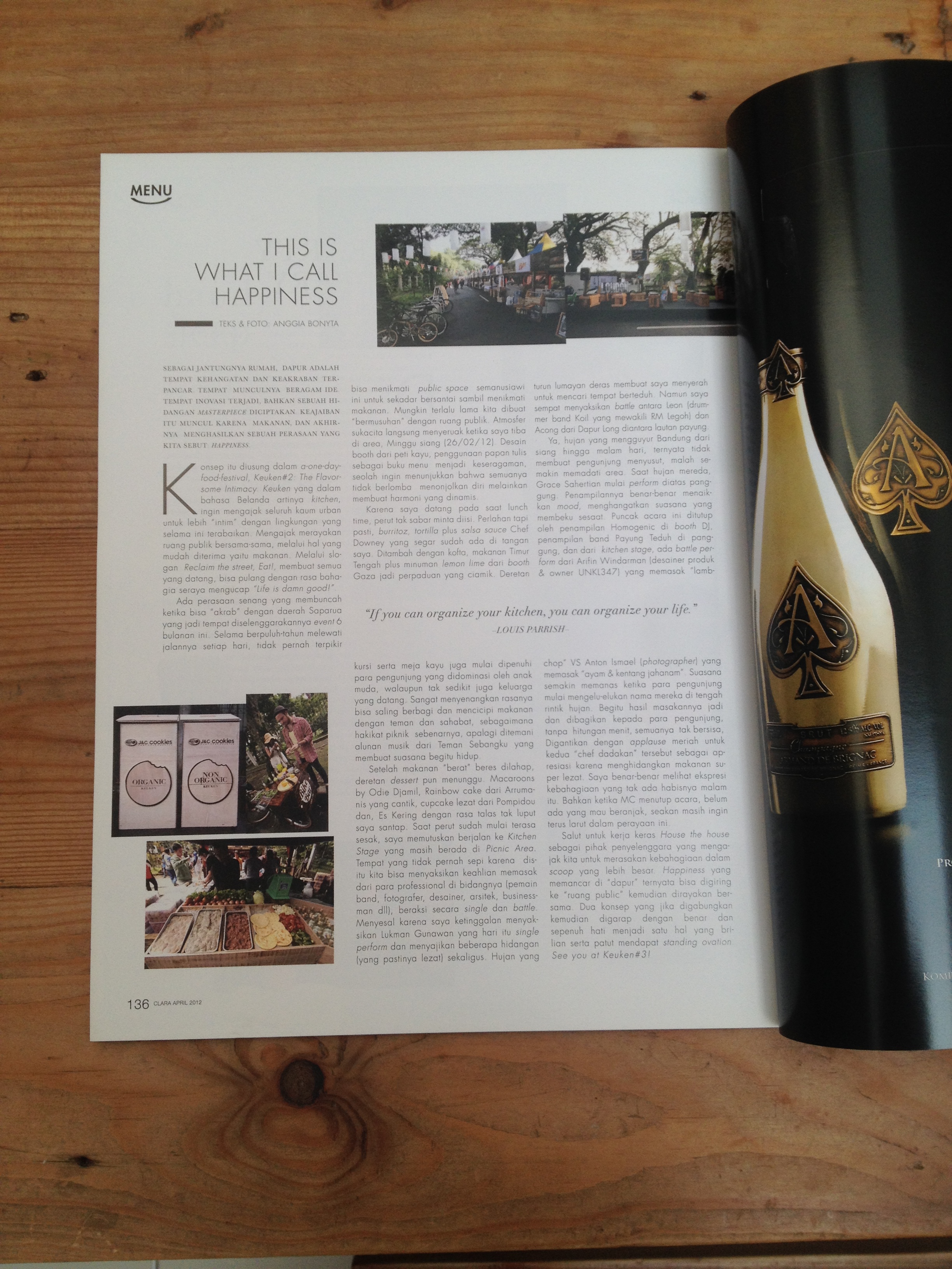 March 23, 2014 My thoughts for CLARA in 2012 CLARA, February 2012, 360 DEGREES- Sahabat Kera Photographer : Arifin Windarman CLARA, April 2012, MENU – Keuken : This Is What I Call Happiness Photo by : Keuken CLARA, Mei 2012, NAVIGATOR – Stevie G Hotel Photographer : Adityo Karno Share this: Click to share on X (Opens in new window) X Click to share on Facebook (Opens in new window) Facebook Like Loading... Related