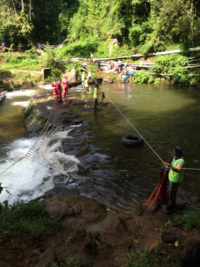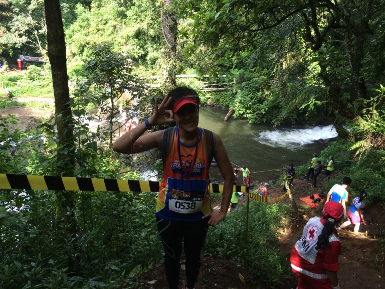 Nah ga jauh dari track kebun teh, udah kedengeran tuh bunyi air sungai. Para marshals selalu ngingetin kita untuk hati-hati karena jalannya agak licin. Kita makin semangat karena emang pengen buru-buru nyampe sungai.
