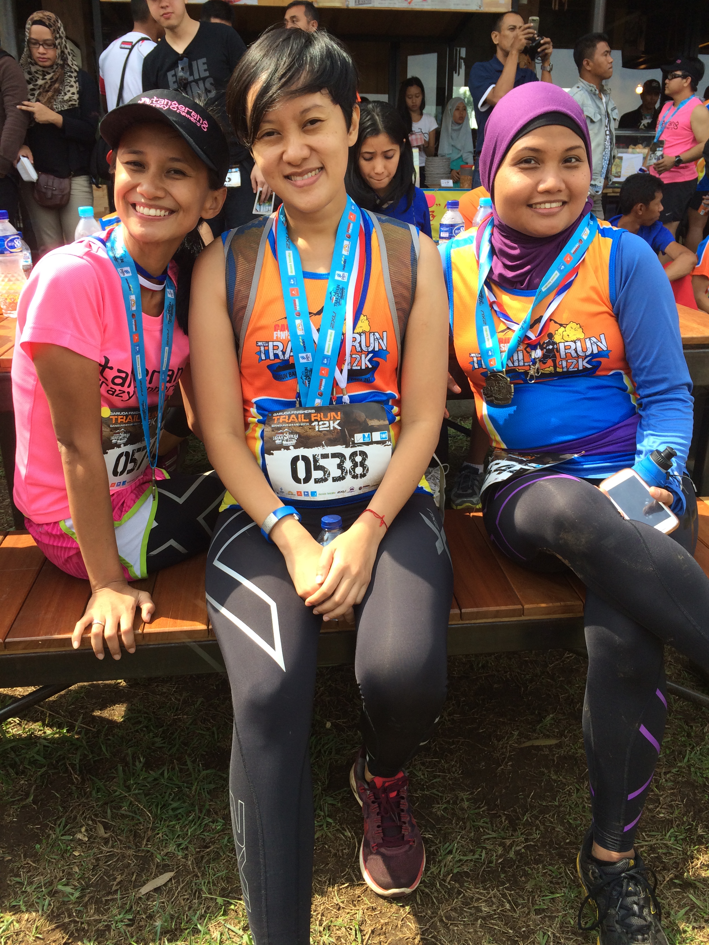 Dengan niat mau hepi-hepian plus foto-fotoan aja, saya beneran santai banget larinya. Persiapannya pun matang (baca : bawa power bank yang terisi penuh plus kabel tentunya, karena tau bakal banyak objek indah sepanjang perjalanan yang harus difoto buat bahan postingan Instagram. Ish, penting ya kak :D). Barengan sama geng Ambrol, Booi yang lagi training buat HM di Sundown minggu ini, dan Gamma yang lagi giat berlatih sesudah melahirkan (penting ya dikasih tau :D) , kita seru-seruan aja selama perjalanan. Udah lama juga ga pernah lari bareng, jadinya kaya kangen-kangenan gitu, ihiy, seruuuu! *uwel-uwelan sama Booi dan Gamma*