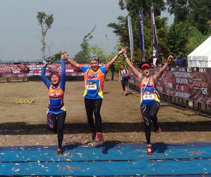 Lagi cape-capenya karena ngelewatin tanjakan terus, marshallnya nyemangatin lagi, “Ayo mbaa..100 meter lagi difoto” Waaw seru ya, kayanya belum pernah juga ada yang bikin kaya gini. Ide bagus lho ini. Jadi kita kan bisa bergaya sesuka hati dan kontrol muka (penting banget loh ini apalagi buat pelari kaya saya :p). Secara biasanya fotografer kan sukanya candid-candid gitu? hihihi trus hasilnya kurang oke karna ga tau angle yang oke (ya itu sih masalah lu ya, Nggi wekeke)…yaudah langsung semangat lari pengen buru-buru difoto 😀 (walopun pas abis finish baru tau kalo foto saya ga ada. Hiks). Beres foto-foto, kita ngumpulin tenaga lagi buat nyampe finish. Begitu liat Nike+, udah 2 jam 30 menit ajee kita. Pasti temen-temen yang lain udah pada nungguin di garis finish dari sejam yang lalu hahaha…. dan itu terbukti, begitu kita nyampe finish, semuanya nungguin di finish line dengan kameranya masing-masing. Inilah salah satu keuntungan larinya lama, soalnya pasti ada yang nunggu sambil motretin kita hahaha *peluk kak Arie, Bechi, Moya, semuanya deh yang nungguin kita*. Enaknya lari sama anak-anak IndoRunners Bandung, mau selama apapun kita finish, mereka pasti tetep semangat nungguin (baik banget kan?) dan bonusnya : rela motretin pulak. Ah senangnya punya keluarga seperti kalian *cipok berjamaah* :* Eh tapi ya, udah lari paling lama diantara temen-temen yang lain, eh sempet-sempetnya lagi kita ngulang minta difoto sambil loncat pas finish hahahah ….ngeselin emang ya :p