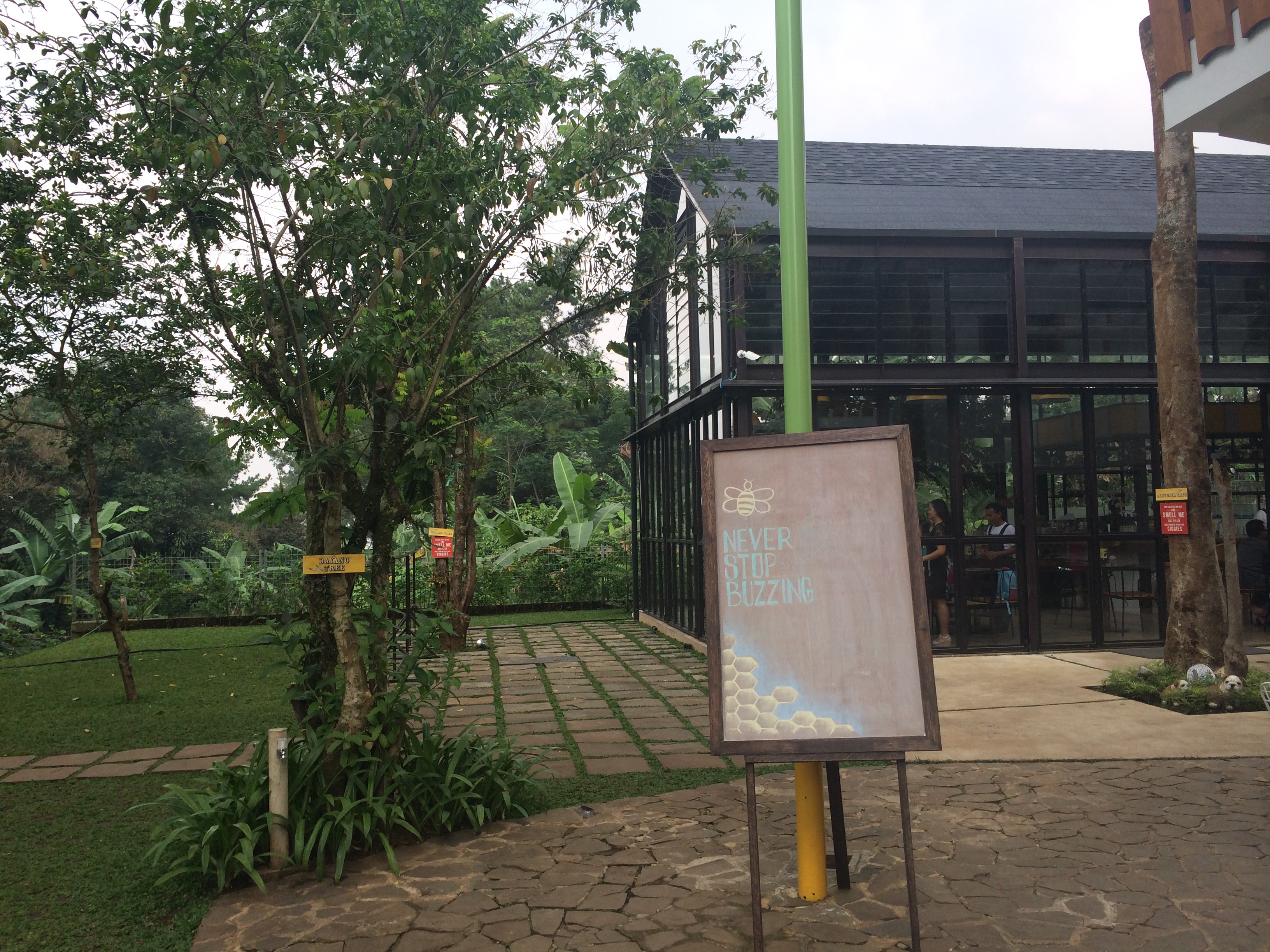 Keinginan untuk makan enak biasanya muncul abis olahraga. Dengan alasan tubuh butuh nutrisi yang baik, (padahal emang belum sempet sarapan aja sih 😀 ) akhirnya kemaren beres ‘disiksa’ di kelas TRX, langsung ngajakin Kilau dan Yola  buat brunch.  Jadilah masih pake setelan drifit beserta keringetnya kita langsung cus. Kebetulan waktu itu pernah baca twitternya Hummingbird, katanya ada sister companynya, namanya Miss Bee Providore yang baru buka dan alamatnya ada di Jl Rancabentang 11A Bandung.  Niatnya cuma dateng bentar doang, sejam-an gitu lah.. Judulnya  biar ga penasaran aja :D. Eh ternyata  buat nyari tempatnya aja pake nyasar dulu ahahahahhaa …Saya pikir  pasti ntar ada tanda apaa gitu buat petunjuknya, tapi ternyata ga ada (apa ga keliatan? 🙂 )