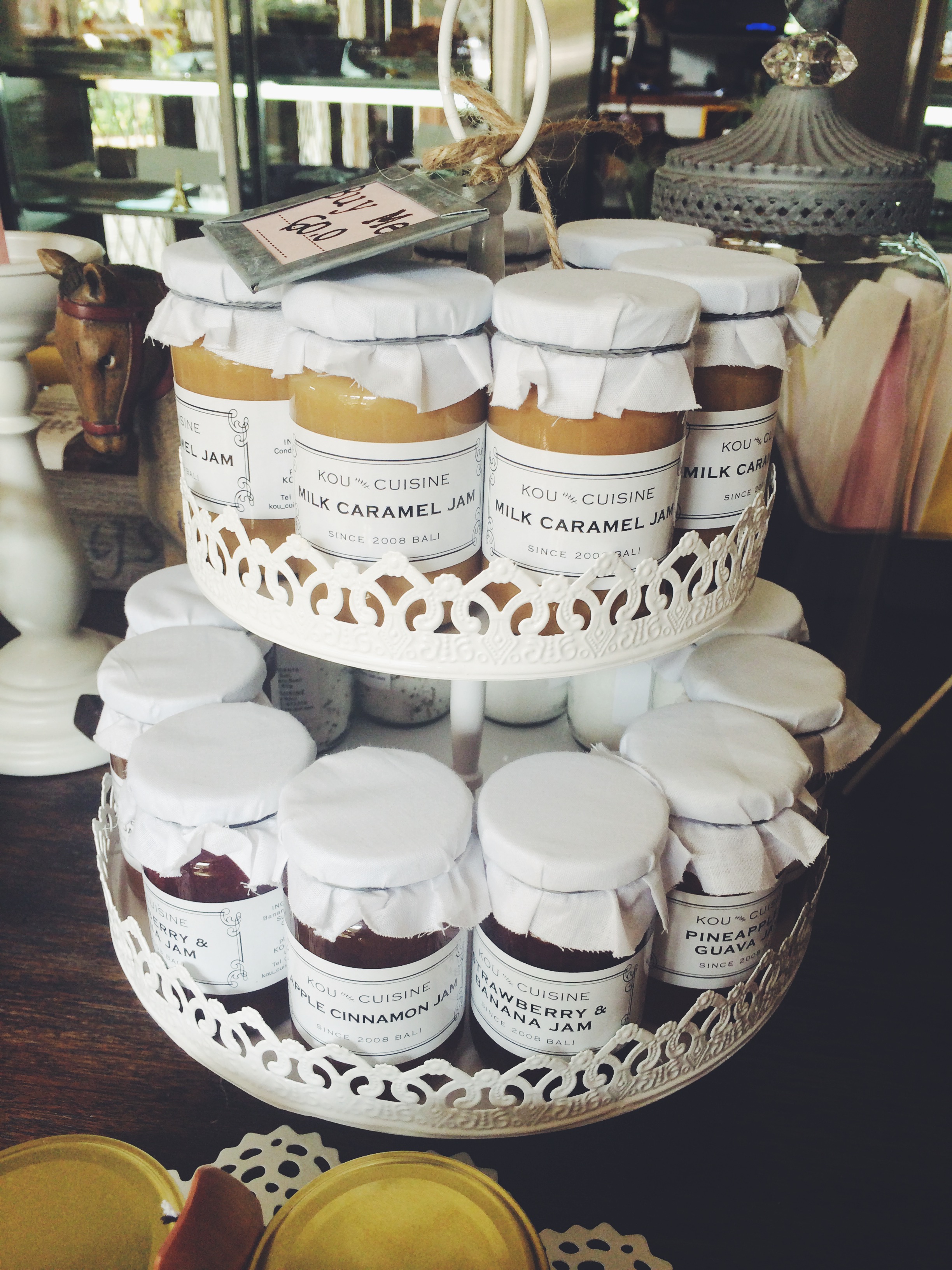 Beres makan, trus iseng liat-liat cakery n retail cornernya. Trus nemu selainya KOU Cuisine yang terkenal itu. Yeay! Ga mesti jauh-jauh ke Bali buat dapetin ini…and yes, milk caramel jam is a must-try ! Banyak juga ternyata sweet goodies  yang dijual disini, dan ditata dengan cantik banget. Beneran, rasanya pengen dibeli semuanya, termasuk  cake-cake lezatnya yang selalu bikin mupeng setiap saat 😀