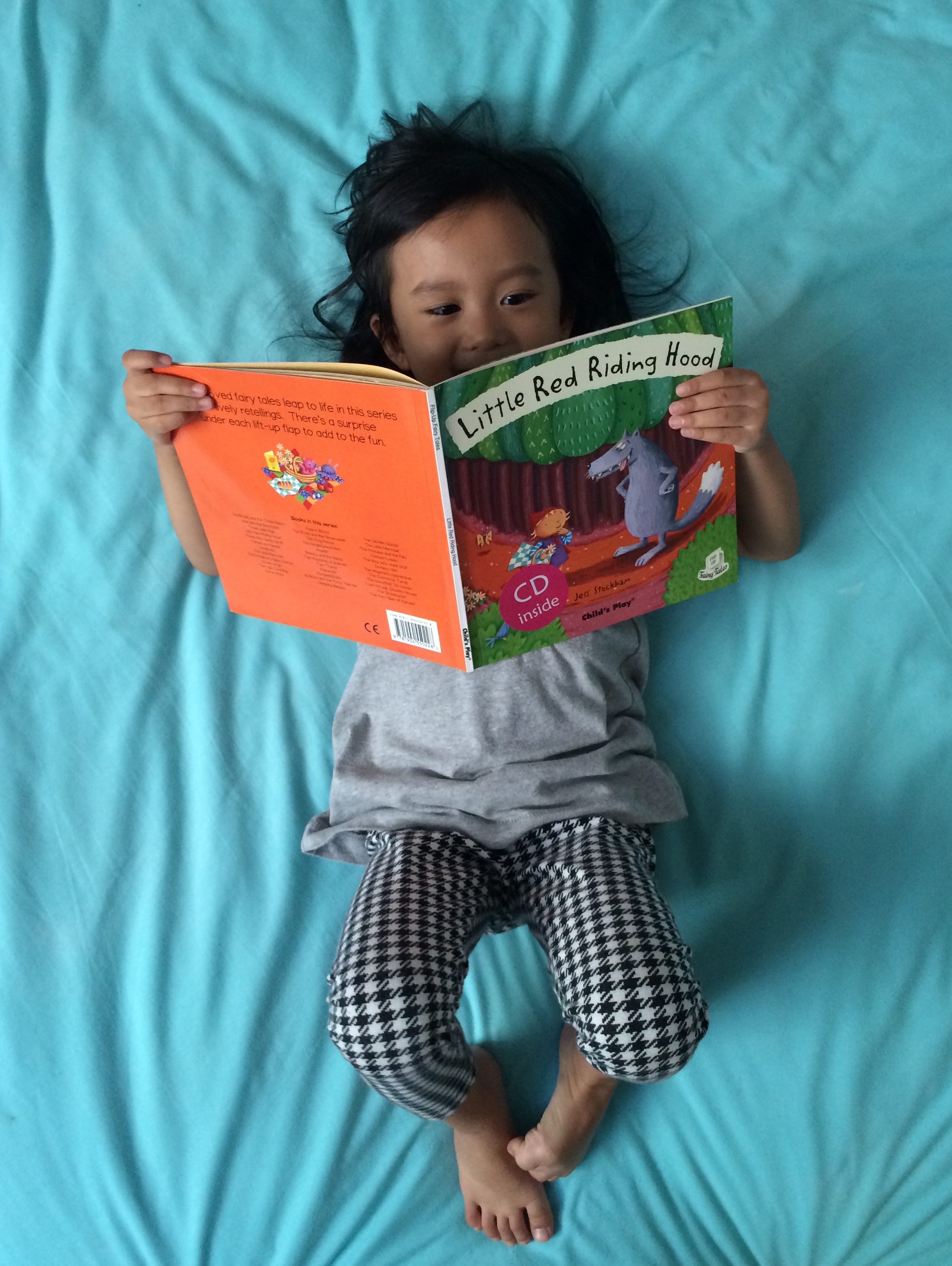 Nah kalo di @alfandloubookstore ga kaya gitu. Mereka lebih ngutamain buku-buku yang punya ilustrasi keren-keren, colorful, dan isinya juga bagus banget buat anak-anak dan jarang saya temuin disini. Karena ilustrasinya keren-keren tadi, Kilau ga pernah bosen liat gambarnya dan selalu minta dibacain terus-terusan sampe dia hafal semua kalimatnya. Kalo udah hafal, biasanya dia trus rikues lagi pengen beliin buku yang lain..hmm..ya..ya..ya 😀