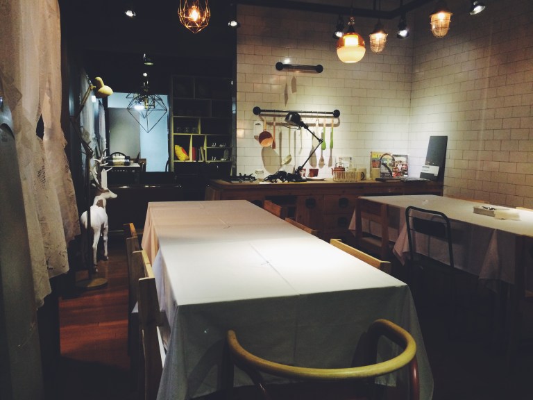 Spacenya emang ga terlalu besar, tapi begitu masuk kedalamnya, suasana hangatnya langsung kerasa, rasanya nyaman, dan nuansanya dibuat seperti kita sedang ada di dapur yang minimalis. Tapi kalo buat saya sih, ini dapur high-end 🙂 Sambil nunggu makan malamnya dimulai, saya mulai mikir, gimana caranya mindahin semua furniture yang ada di U&KL Kitchen trus dipindahin semua ke rumah *Ya dibeli aja keuleus 😀 *