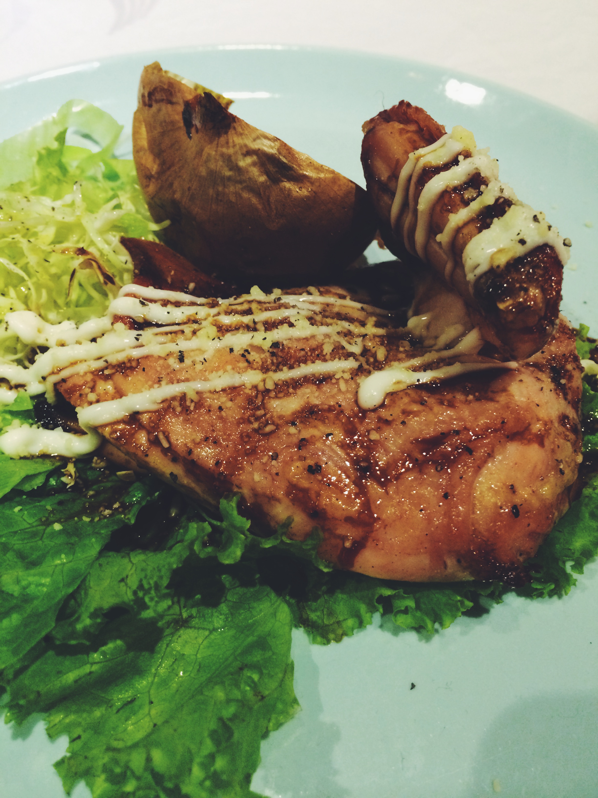 Lanjut main menunya ; deep fried breaded chicken cutlet with kitchen’s brown sauce, roasted chicken with kitchen’s sweet soy sauce, smoked chicken risotto, scallop cream risotto, grilled lamb with pepperminta sauce, beef onion burger with handcut fries.
