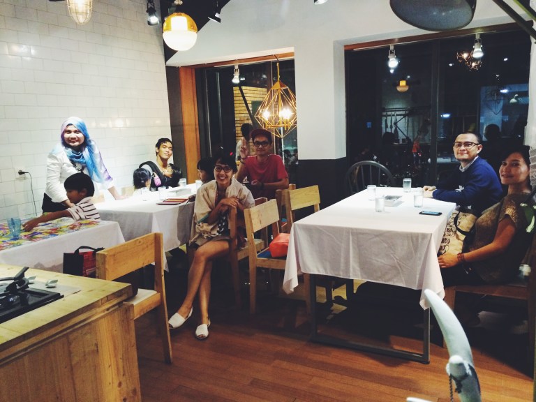 Hari H yang ditunggu-tunggu akhirnya tiba juga. Jam 7 malem kita udah nyampe di Kitchen yang lokasinya emang sama dengan UNKL347 Flagship Store, Jl Trunojoyo no 4 Bandung. Tulisannya emang sengaja dibold biar menjawab pertanyaan yang paling sering ditanyain : “Sebelah mana UNKL sih?” hehe..iya, ini tempatnya sama ko sama tokonya. Kalo mau gampangnya, ini letaknya ada disebelah Family Affair. Kamu akan liat ada sebuah ruangan dengan kursi dan meja yang berjejer, lengkap dengan kitchen setnya. Nah itu dia tempatnya! 🙂