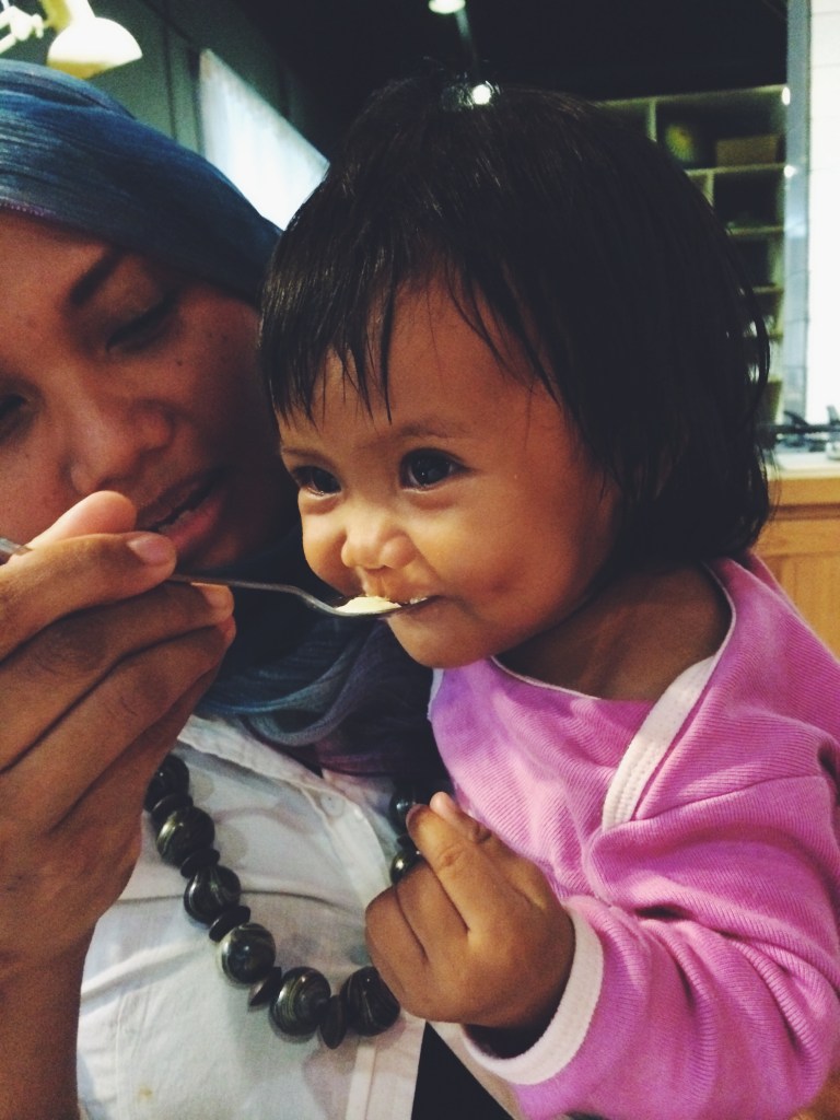 Freya si bayi yang pas bulan Juli kemaren 7 bulan umurnya, bahagia banget pas disuapin Creme Brulee nya 😀 Bayi ga pernah bohong kan? Jadi percayalah kalo semua makanan disini enak 🙂