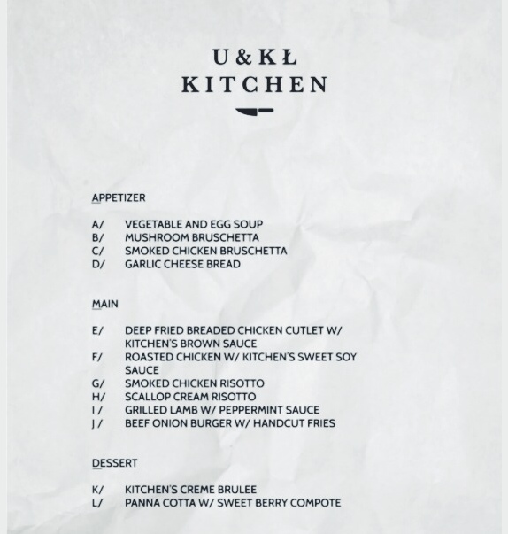 Pengen menularkan kehappy-an ini sama tema temen-temen deket saya, akhirnya besok lusanya saya makan lagi disini. Jadilah geng ambrol sekaligus tim bangkek diajakin dinner juga di U&KL Kitchen (walopun minus Thia, Rian dan Felix, huft). Pemilihan menu udah dilakuin juga sebelum hari H. Yang paling lucu adalah pas nanya menu ke Iing. Kalo yang lain bales wasapnya paling lama 10 menitan, kalo Iing sampe berjam-jam! Hahaha… Iing akhirnya memilih menu berdasarkan : Itung kancing, karena gugel trenslet ga membantu katanya *ngakak* 😀