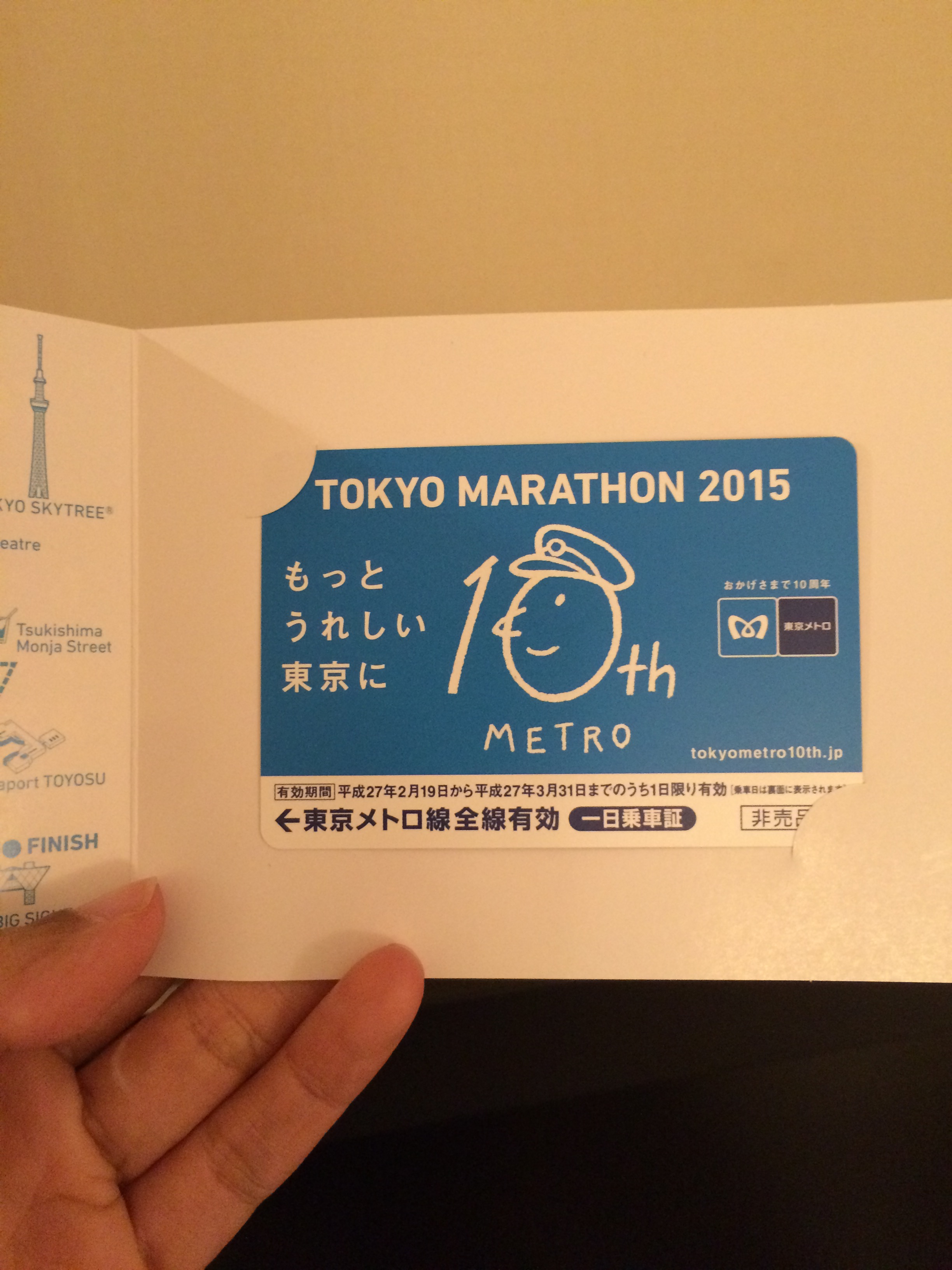 Sebagian isi racepack, plus ada kartu Metro gratis yang bisa dipake seharian penuh. Sisanya flyer2 berbahasa Jepang 🙂