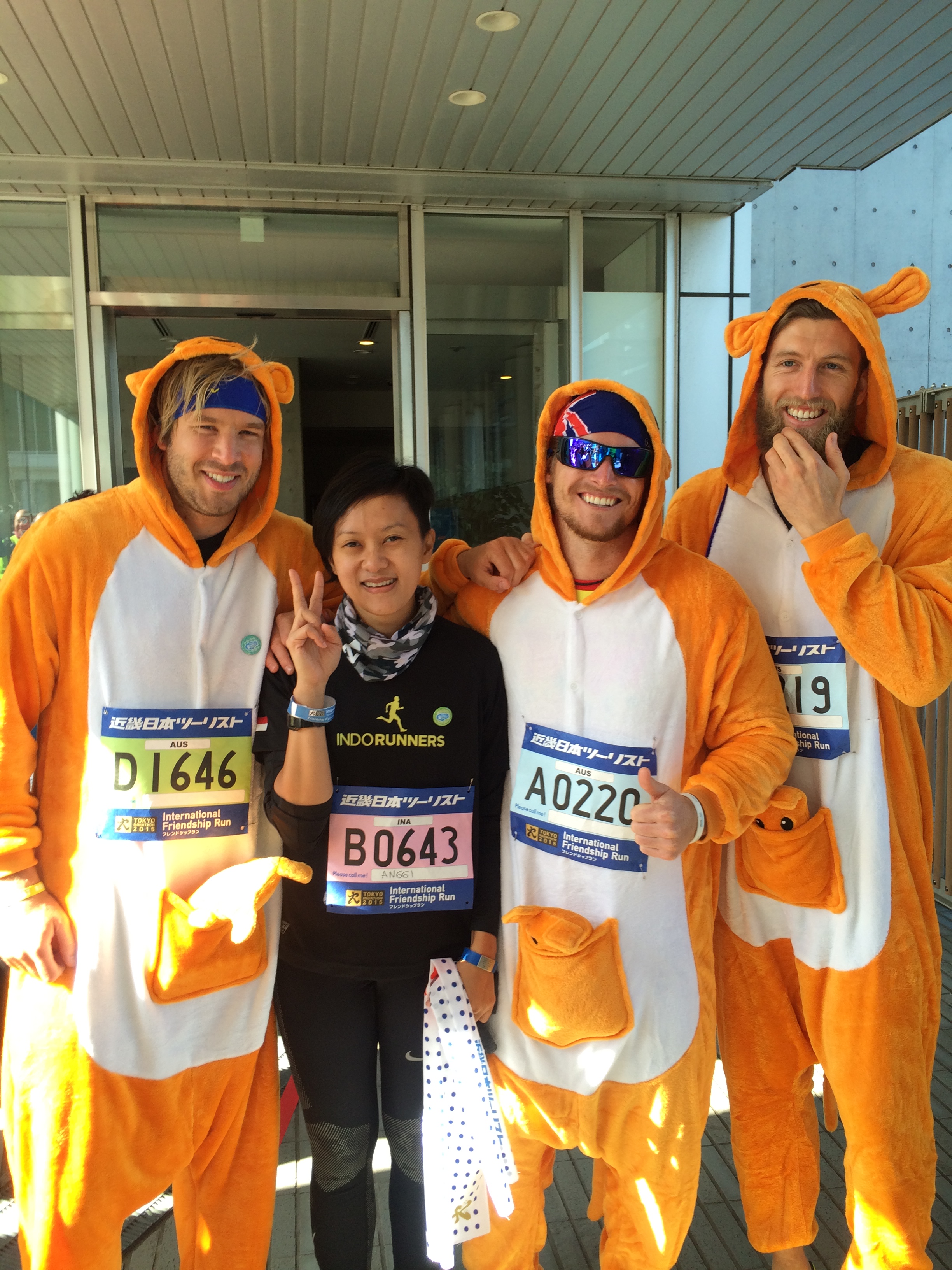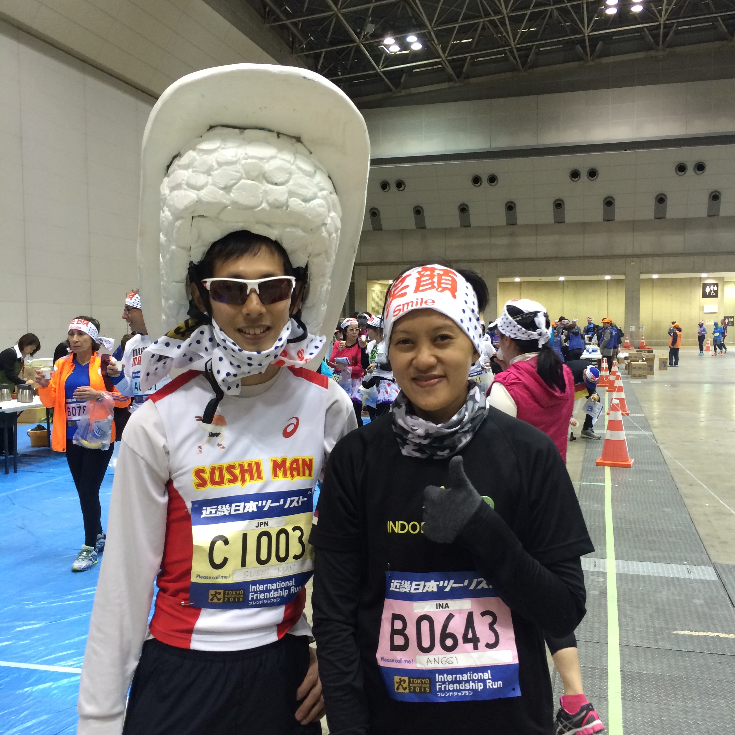 Jam 9 pagi saya udah nongol sendirian di Panasonic Center buat ikutan Friendship International Run. Saya emang tertarik ikutan karena itung-itung adaptasi sama cuaca disana sebelum besok lari beneran. Yustin dan temen-temen JRR juga tadinya mau ikutan tapi mereka akhirnya cancel dan memutuskan untuk lari-lari di sekitar hotel karena emang lumayan jauh perjalanan kesini hehe.. Begitu nyampe tempatnya, ternyata udah rame aja dan yang bikin seru adalah banyak banget yang pake kostum! *Saya langsung inget Moya, yang anaknya seneng banget pake kostum. Taun depan ikutan ya Moy,  pasti jadi selebritis dadakan disini :D* .  Sebenernya ini cuma  fun run 5K gitu. Tapi semuanya diorganisir dengan baik layaknya race beneran. Semua volunteernya ramah banget dan ga pernah berhenti senyum, sesuai tulisan di jaketnya, “TEAM SMILE” *love*