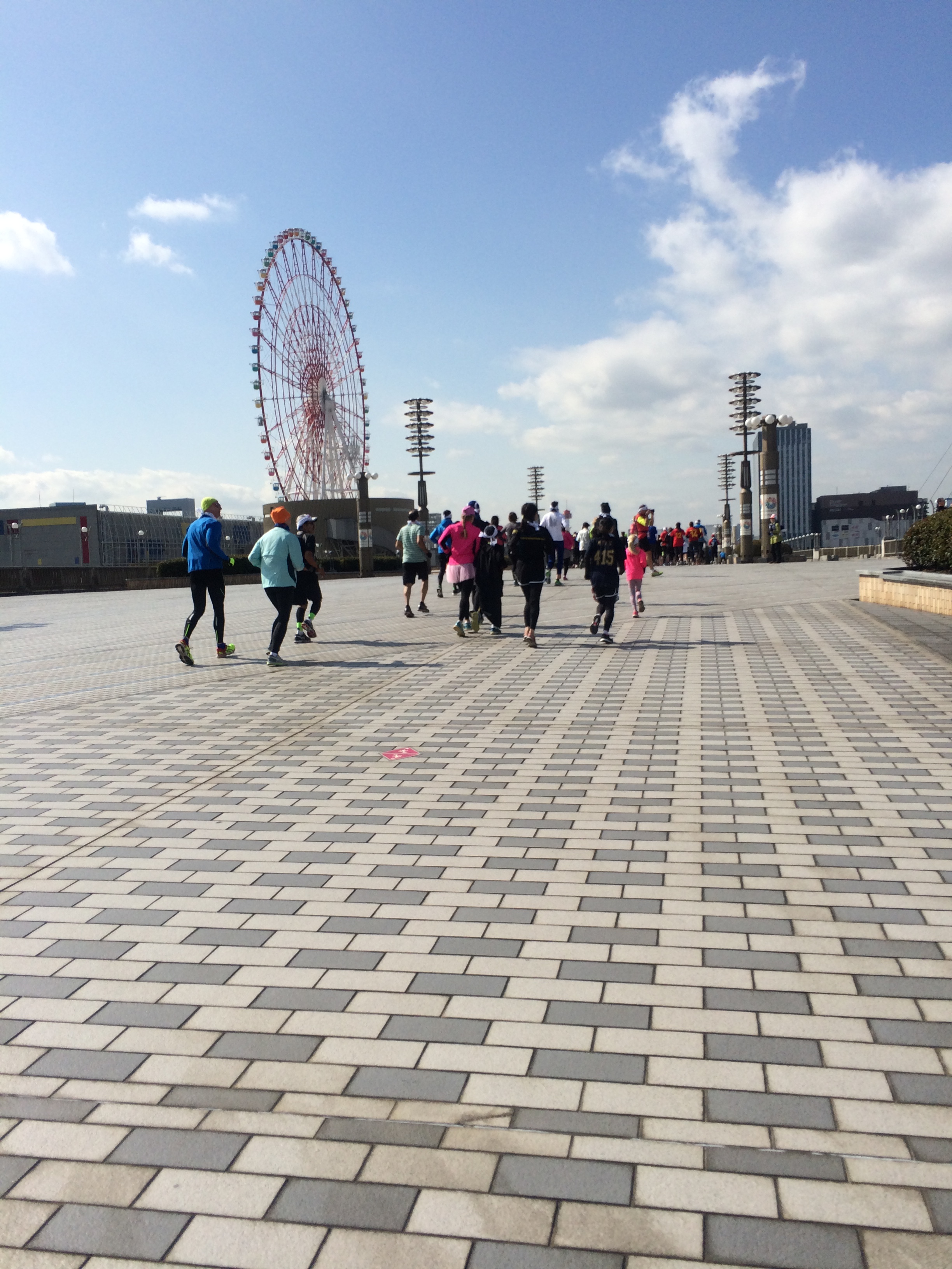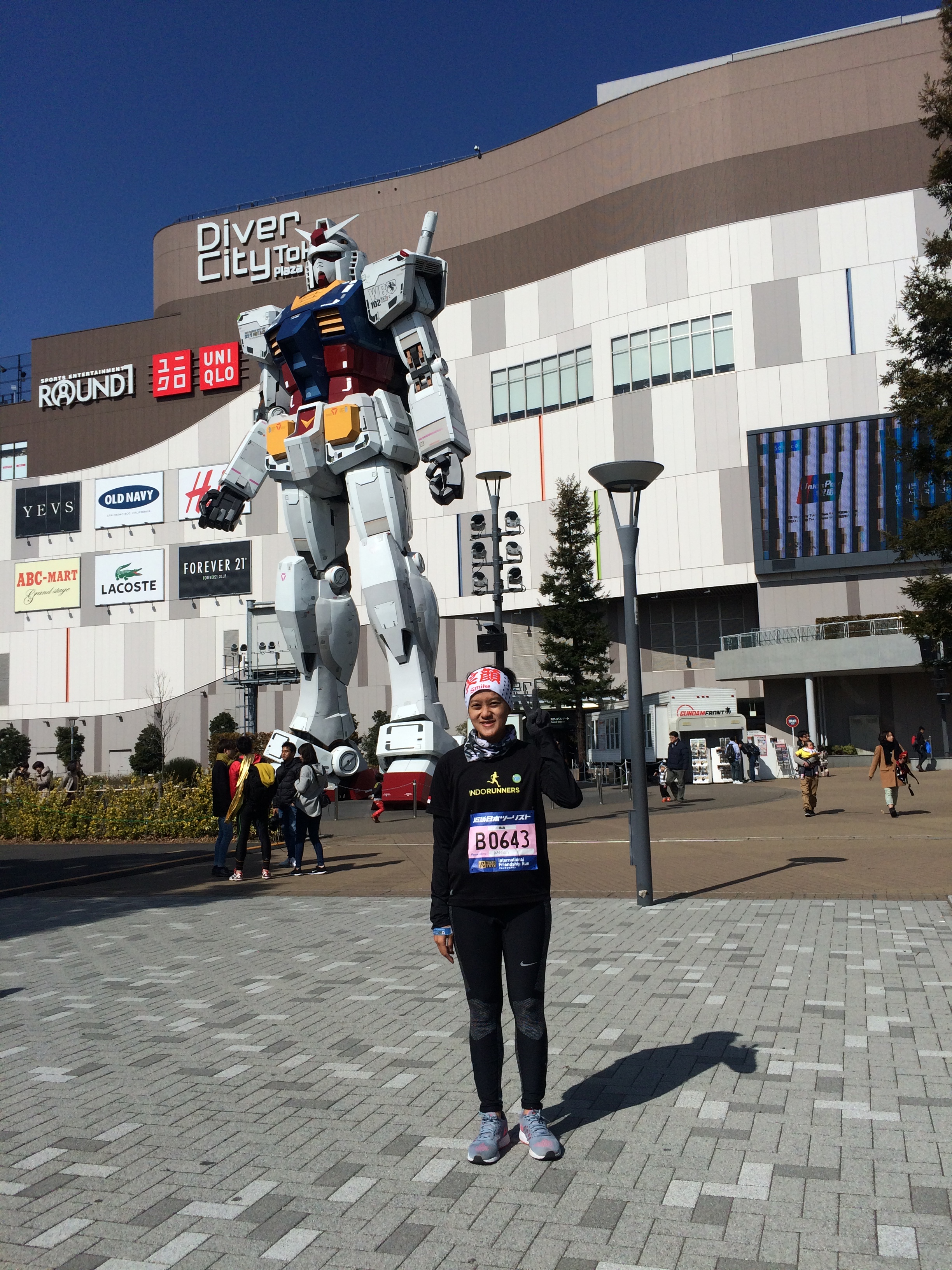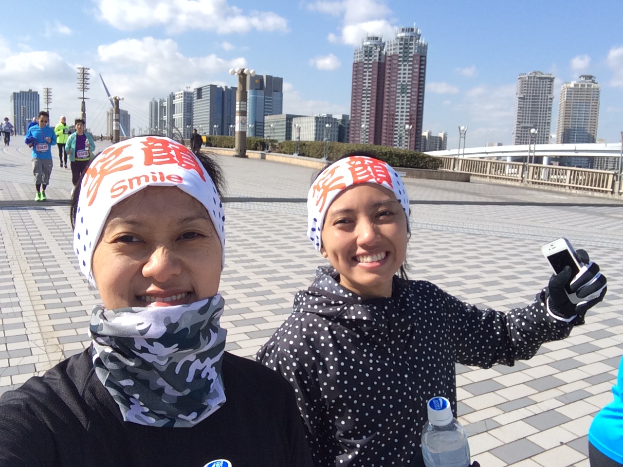 Jadinya beneran ga ada yang ngebut juga, semua santai banget sambil liatin view sekitaran Odaiba yang banyak taman dan mall-mall seru. Perpaduan udara dingin dan matahari yang lumayan terik bikin udaranya enak banget buat lari. Meskipun enak,, tapi beneran mesti pake buff biar idungnya ga tiba-tiba meler hehe..