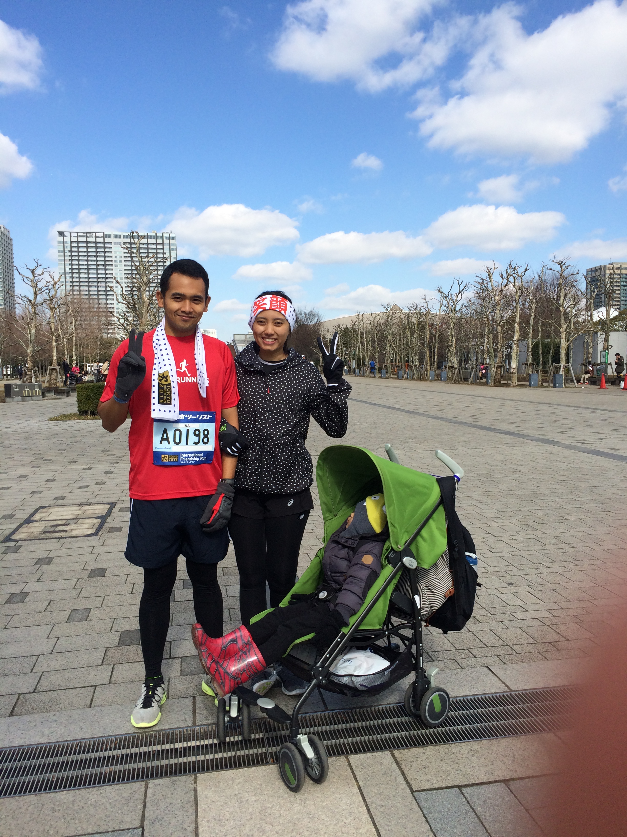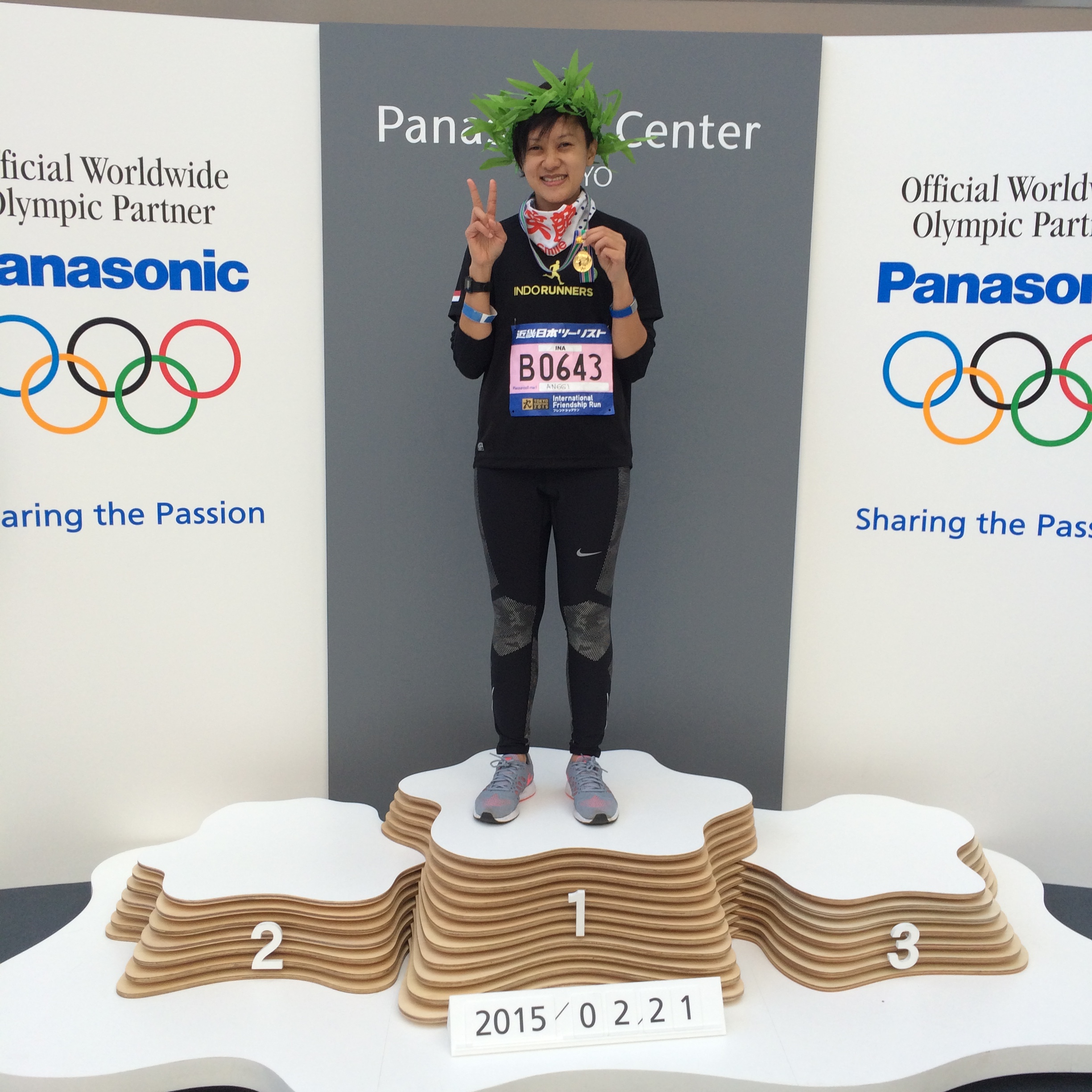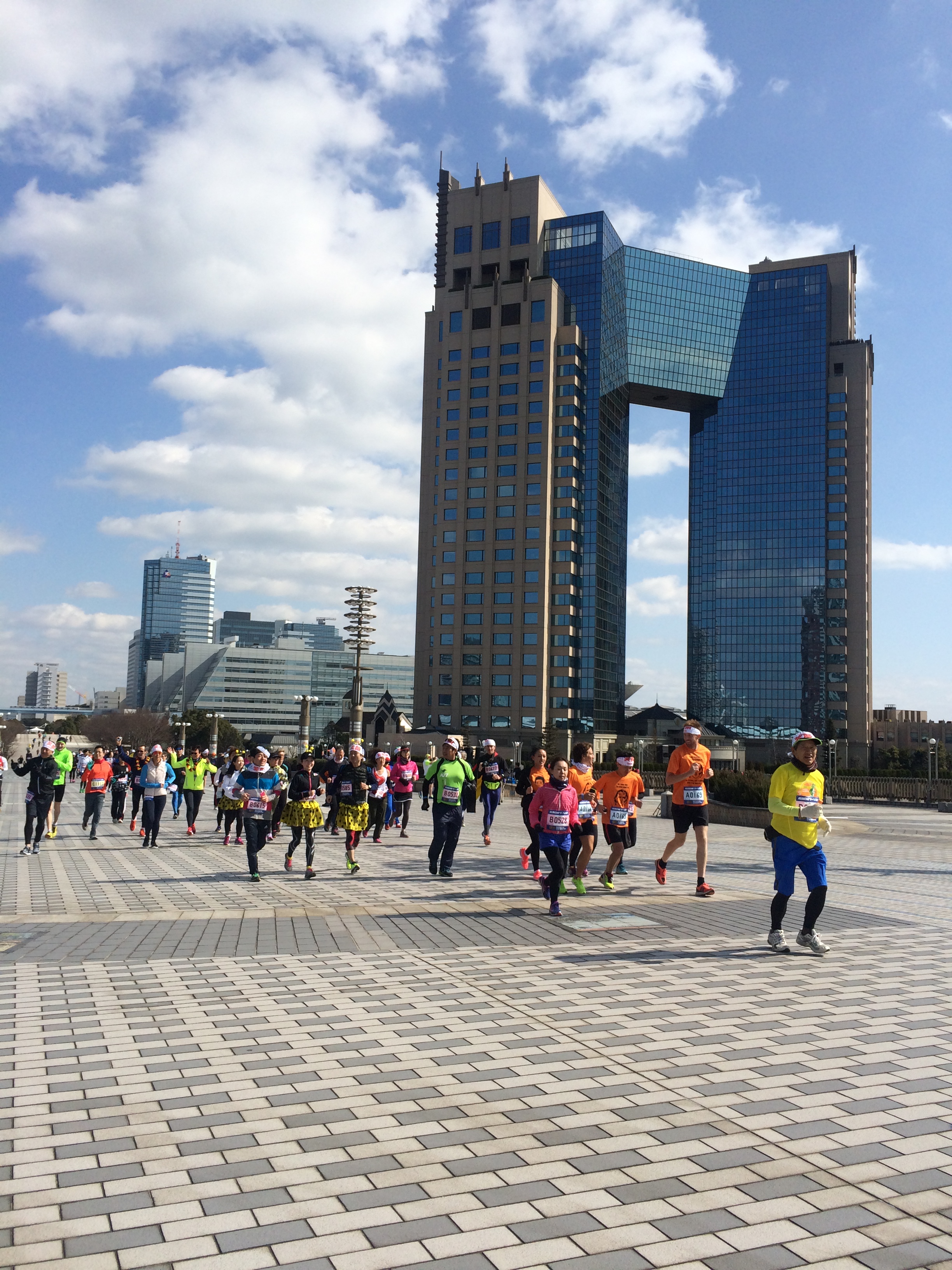Jadinya beneran ga ada yang ngebut juga, semua santai banget sambil liatin view sekitaran Odaiba yang banyak taman dan mall-mall seru. Perpaduan udara dingin dan matahari yang lumayan terik bikin udaranya enak banget buat lari. Meskipun enak,, tapi beneran mesti pake buff biar idungnya ga tiba-tiba meler hehe..