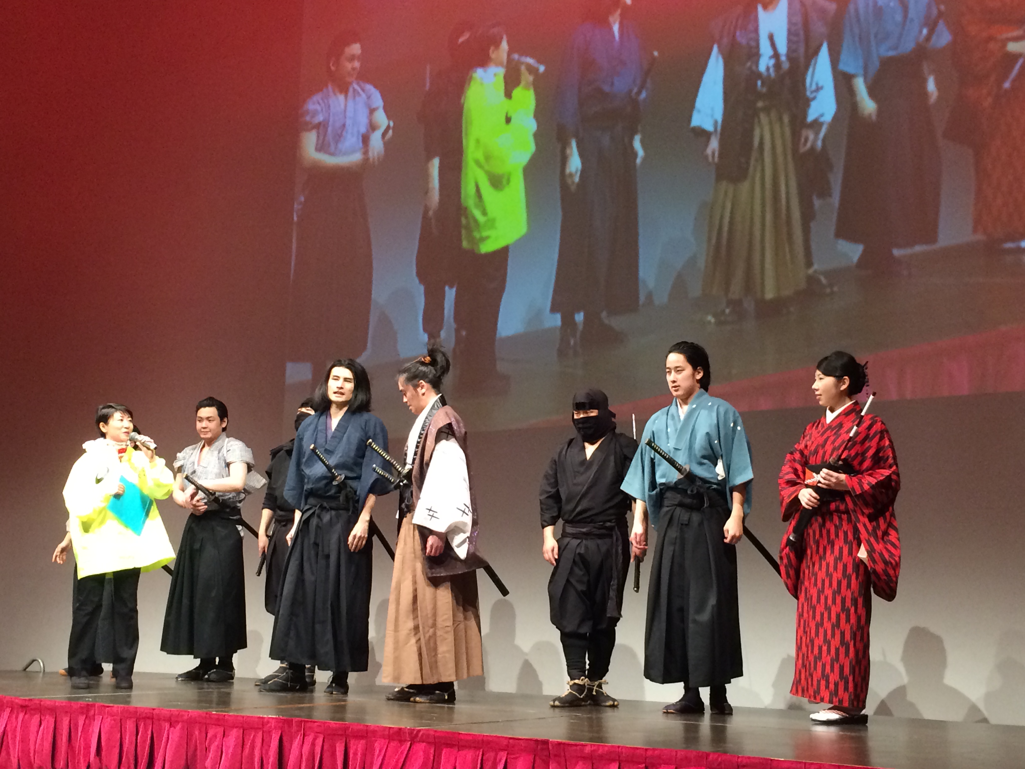 Beres acara larinya, saya ikut acara partynya, sebenernya semacam carbo loading bareng dan acara perkenalan sesama pelari gitu sambil disuguhi pertunjukkan samurai di akhir acara. Makanannya enak, kita bisa milih beberapa menu spaghetti dan roti yang disediakan. Alhamdulillah aku kenyang *burp*.  Ternyata seru juga sih acara ini, bisa kenalan sama runners dari negara lain dan dari beberapa runners yang diajak ngobrol sama MCnya,   ada yang udah 16 kali ikut marathon,12 kali, ada yang udah 8 kali, dan banyak juga sih yang baru pertama kali ikut marathon kaya saya. Setelah acaranya selesai, kita pun dikasih goodie bag tempat naro kartu nama khas Jepang gitu. Mayanlah ya 🙂