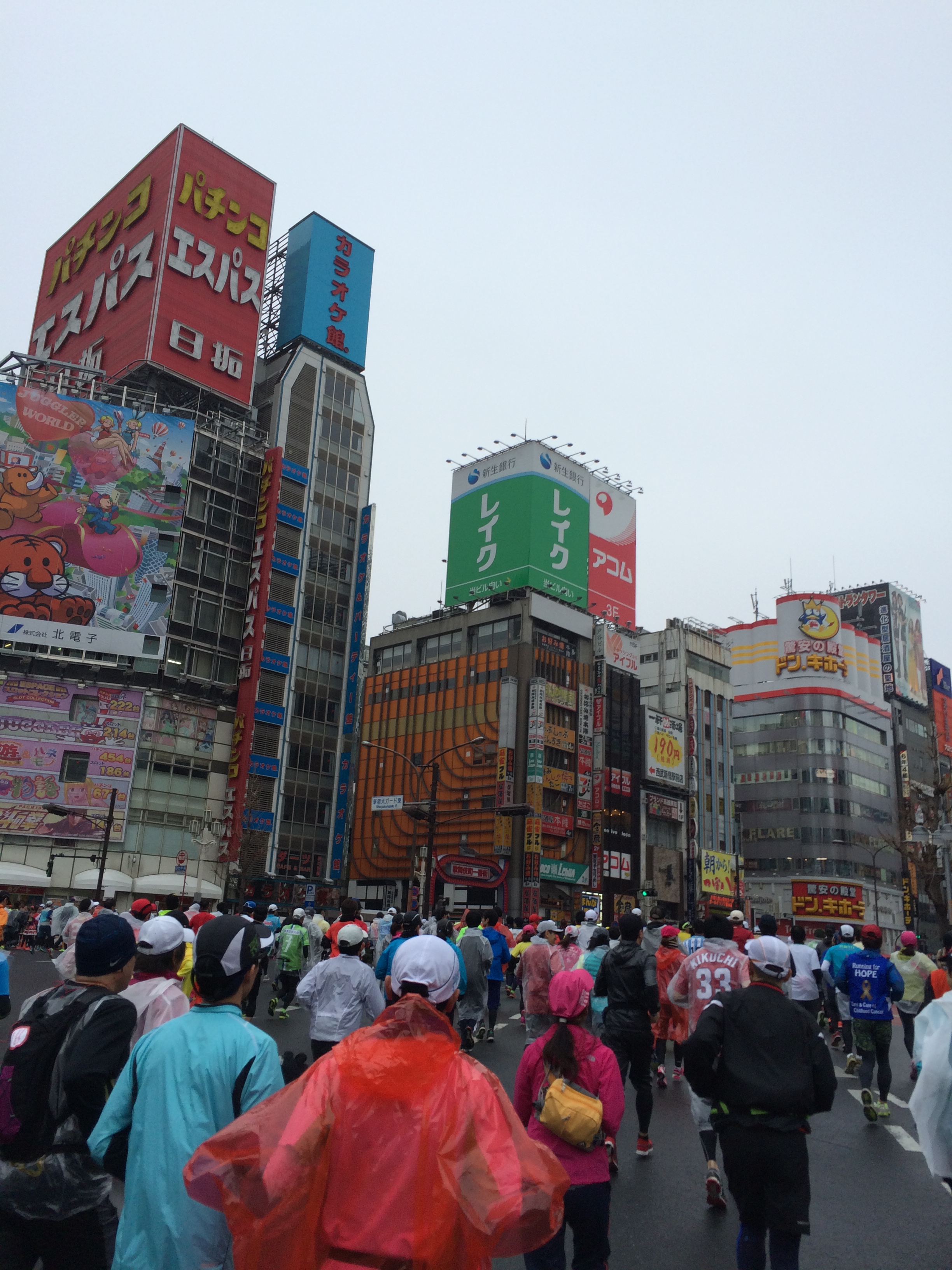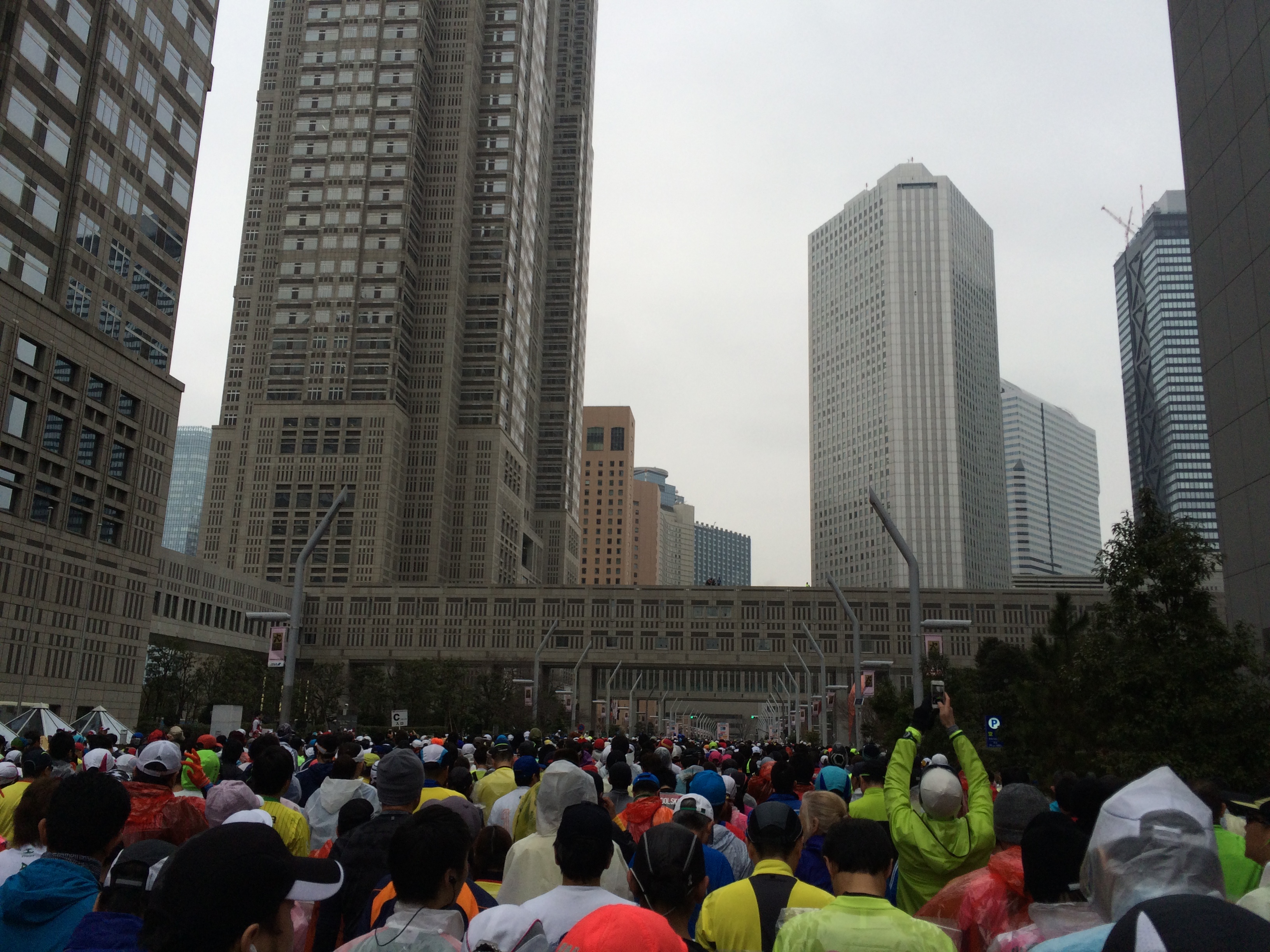 IMG_8163Melewati daerah Shinjuku yang luas banget dengan gegap gempita yang luar biasa.  Sambil nulis ini saya merinding kalo inget betapa meriahnya suasana waktu itu. Ngeliat semua orang turun ke jalan dalam keadaan gerimis, tapi tetep ngasih support dengan sepenuh hati bikin semangat dan ga mau berhenti senyum gitu rasanya. Sampe disini saya masih bisa bisa ngeluarin handphone dari saku saya untuk mengcapture suasana sekitar, tapi abis itu tangan saya kaku karena kedinginan dan menyerah buat foto-foto 😦 Padahal pengen banget mengcapture semua moment.  Untungnya foto-foto di twitter Tokyo Marathon lengkap banget. Jadi saya posting sebagian disini biar kebayang suasana waktu itu 🙂