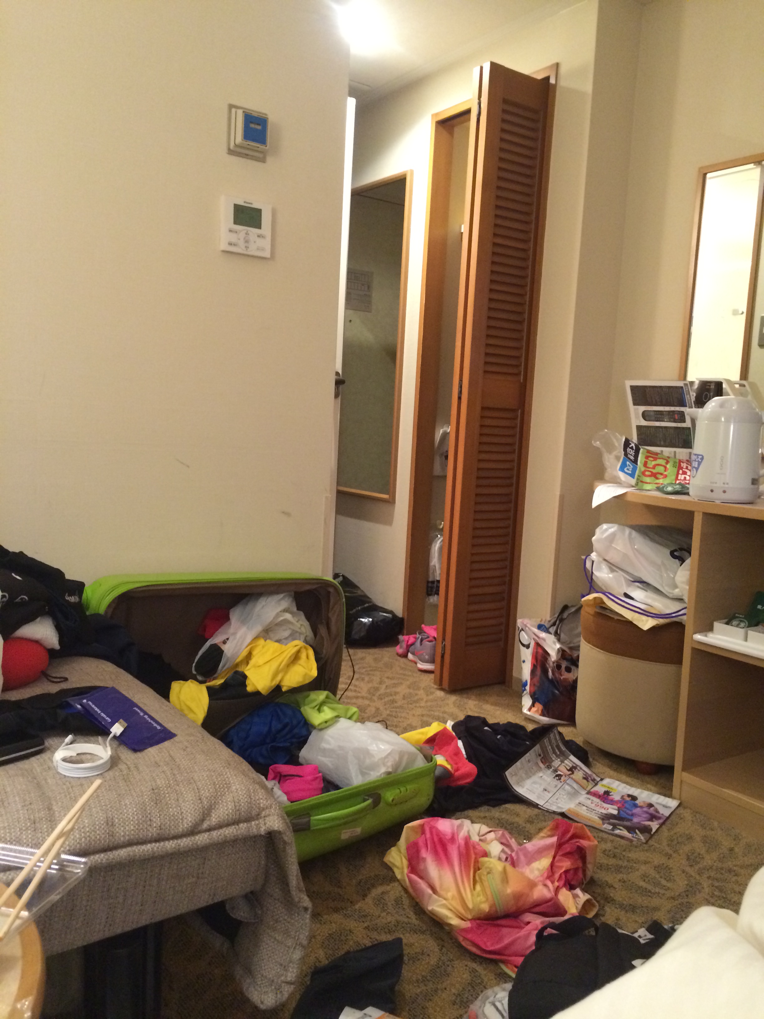 Ga lama, whatsap dari ketua rombongan JRR aka Yustin masuk 🙂 : “Nggi, kita kayanya mau ke asakusa ueno..Lo kesini aja jam 9an stengah 10. Mau pada ngopi dl, trus ke ginza gt kali ya”. Yeay asik! Karena saya juga pengen ke Ginza, jadinya saya memutuskan untuk ikut bergabung sama rombongan. Tapi kasurnya sungguh posesif haha jadinya sejam kemudian saya baru turun dari kasur dan mulai siap-siap. Sementara pemandangan kamar bener-bener kaya kapal pecah karna belum sempet diberesin abis lari kemarin. Untung sendirian di kamar, jadi ga ada yang protes kalo kamarnya berantakan 😀