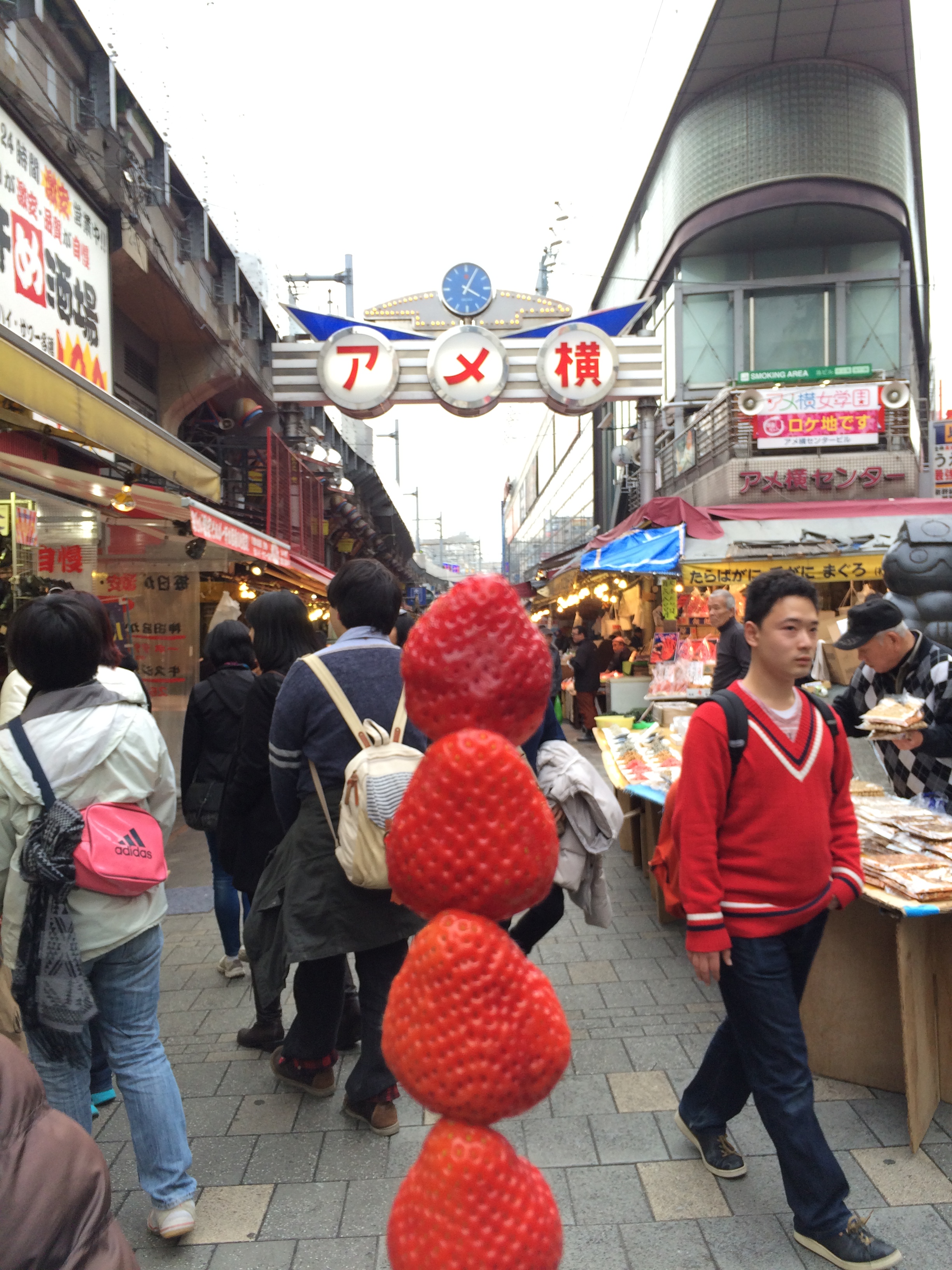 Puas foto-foto, kita trus mampir bentar di pasar yang letaknya ga jauh dari Ueno Park. Banyak makanan buat oleh-oleh dan harganya jauh lebih murah. Trus juga banyak makanan-makanan yang menggiurkan buat dicoba. Pulang dari sini, semua kembali membawa gembolan 🙂
