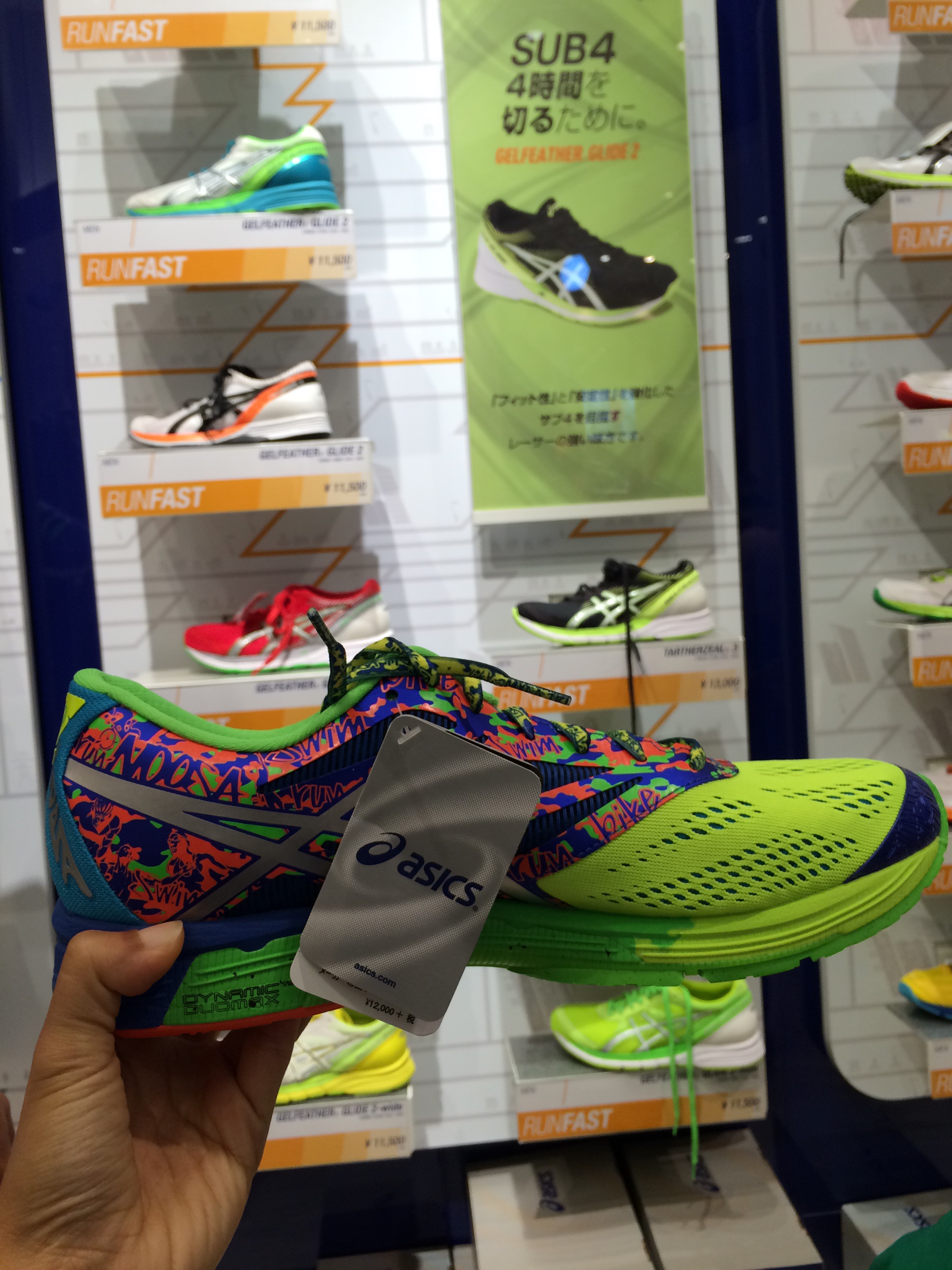 Sore itu Asics Store penuh sama orang Indonesia hehe..Selain rombongan kita yang jumlahnya 10 orang juga disana ktemu rombongan grup lari lainnya. Yang jelas semuanya pada ngeborong sepatu. Saya juga sempet liat-liat tightsnya, tapi model kaya Mikimoto ternyata ga keluar lagi, padahal kalo masih ada, saya pengen banget punya lagi 😦