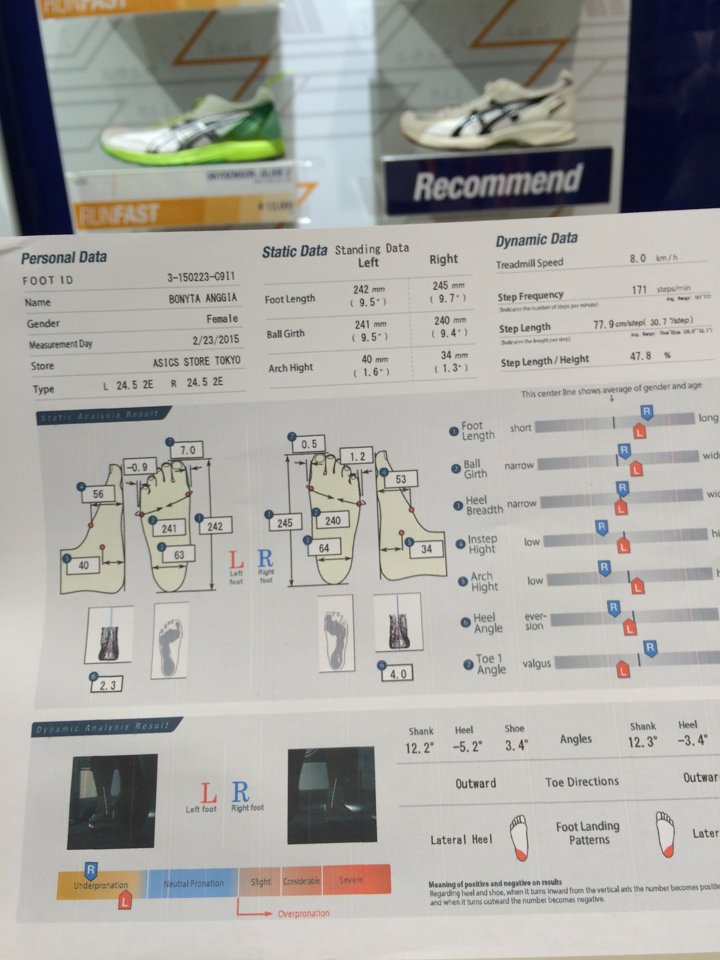 Ga lama, keluar deh hasilnya. Saya direkomendasikan pake sepatu Asics yang Gel-Nimbus. Pas dipake ternyata enak juga. Mungkin ini saatnya beralih ke Asics demi keparipurnaan kaki juga biar larinya kenceng-kenceng kaya temen-temen JRR 🙂