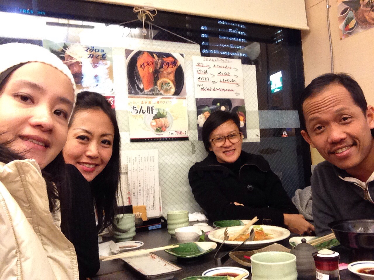 Abis beres-beres seadanya, saya pun bergegas buat bergabung ke markas besar, Hotel Sunroute Plaza. Pas saya nyampe, mereka lagi ngopi di kafe sebrang hotel. Kita semua jalannya agak terpincang-pincang dan berdoa supaya ga ketemu tangga hahaha tapi mana mungkiiiin..makin dihindarin, makin seringlah ketemu sama tangga ketika di train station 🙂