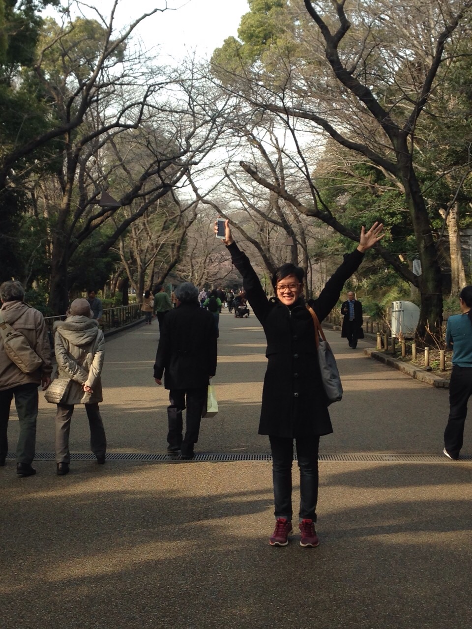 Sesampainya di Ueno Park, saya happy banget. Tamannya luas dan bersih banget, persis kaya taman-taman yang suka saya liat di film Jepang *lah piye* 😀 Trus sambil ngebayangin kayanya enak nih lari disini. Ah ingin!
