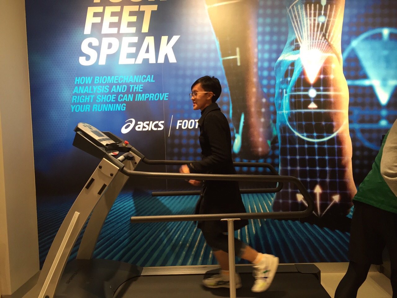 Tapi trus tiba-tiba tertarik pengen test foot juga disini. Pengen tau aja judulnya 😀 Jadi pertama-tama setelah registrasi, kaki kita ditempelin sticker kecil di titik-titik tertentu, trus dimasukin alat di bagian kaki trus kita dikasih sepatu dan disuruh lari di treadmill selama beberapa menit buat diliat gimana kaki kita kalo lagi lari. Kalo kita beli sepatu, si fasilitas treadmill ini free. Tapi kalo kita ga belanja sepatu, kita dikenakan charge 500 yen *klo ga salah* 🙂