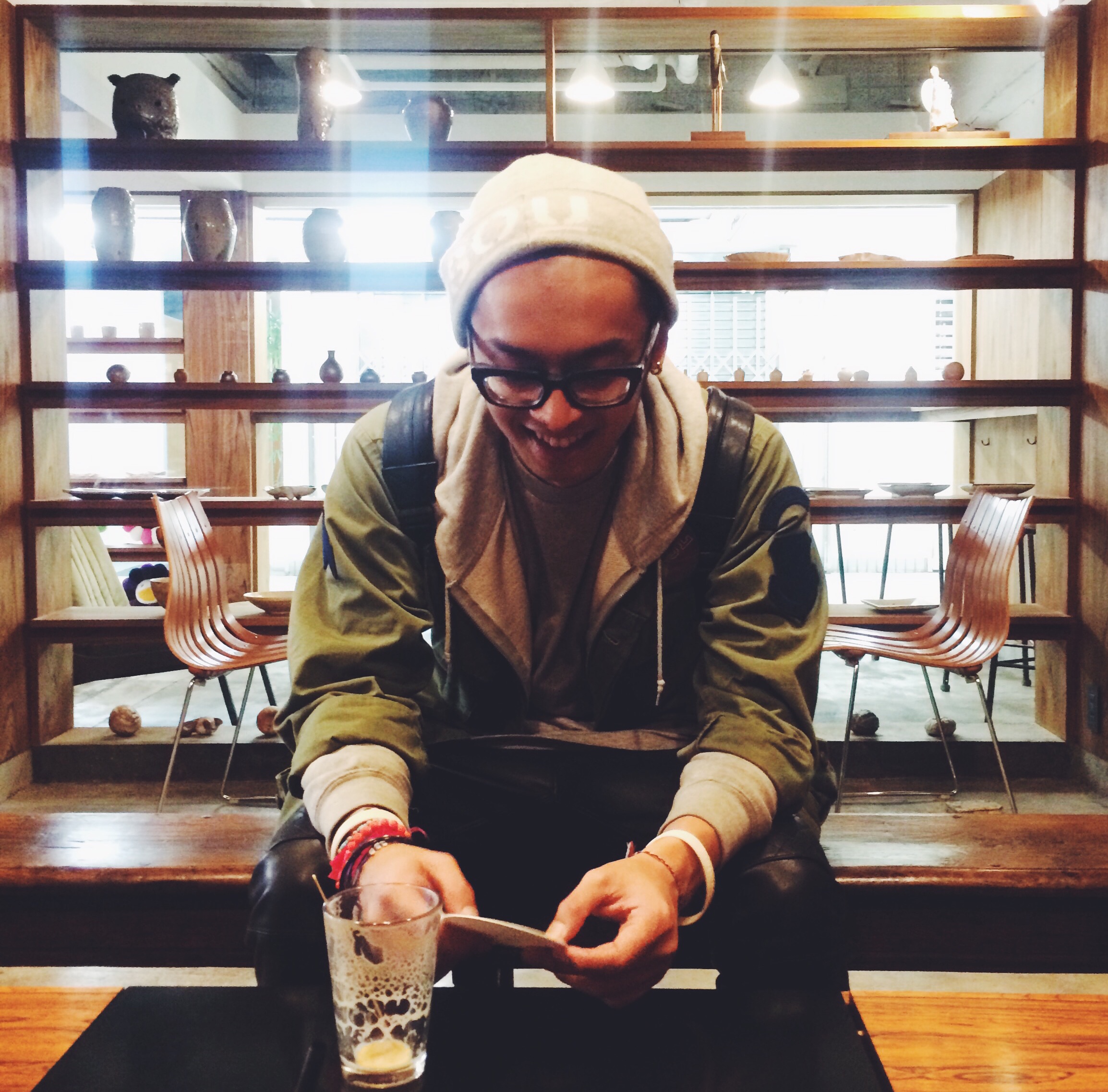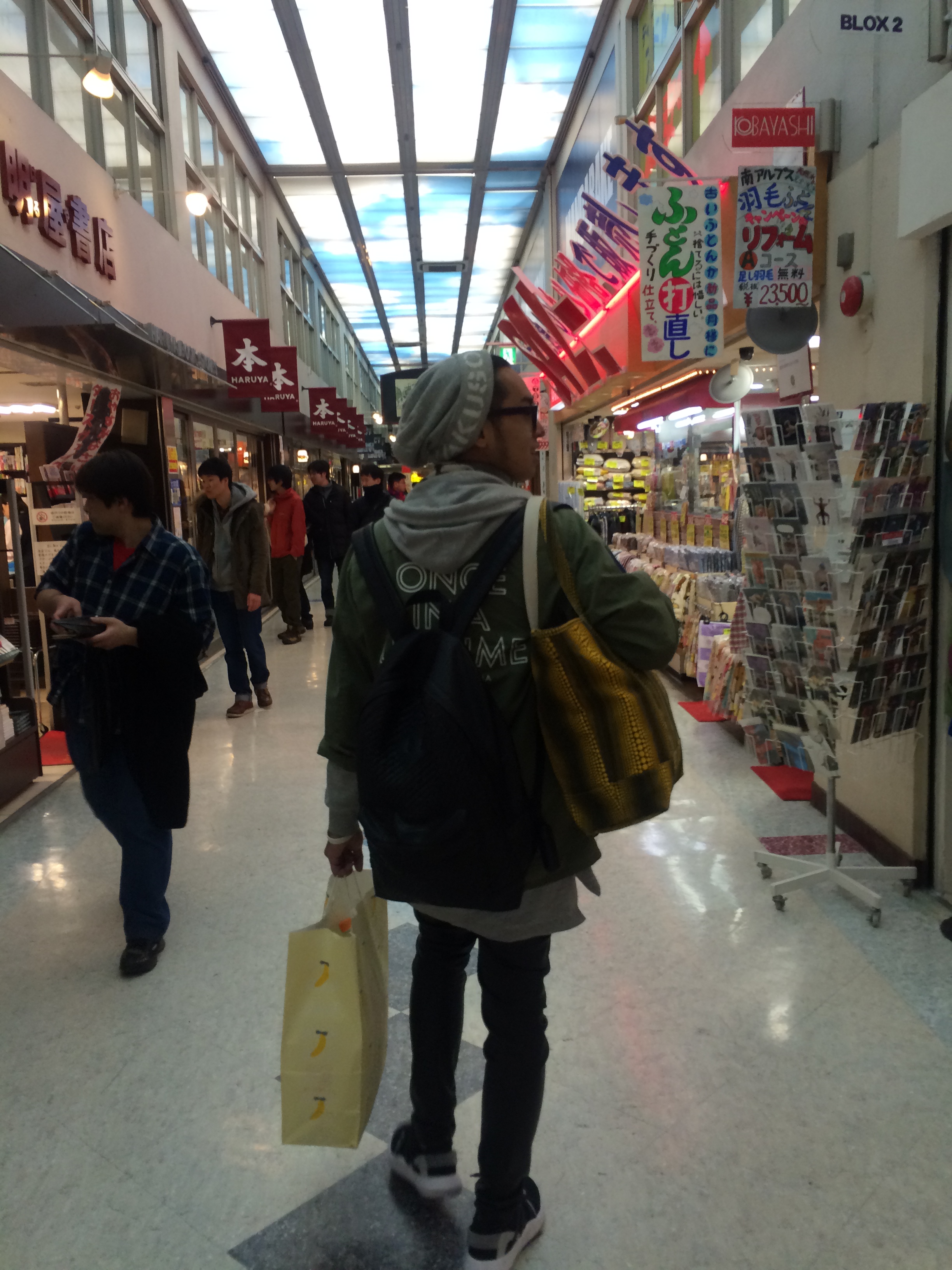 Satu per satu tokonya pun tutup. Padahal baru jam 8 malam. Ahirnya sih cuman beli beberapa biji aja, tapi duit yang dikeluarin sama kaya abis beli 3 Onitsuka, 1 racer flyknit, 1 Huarache dan syal Uniqlo! *keselek mochi*:D Trus kita istirahat bentar di Bar Zingaro milik Takashi Murakami. Karna ga ngopi, saya pesen green smoothies aja 😀