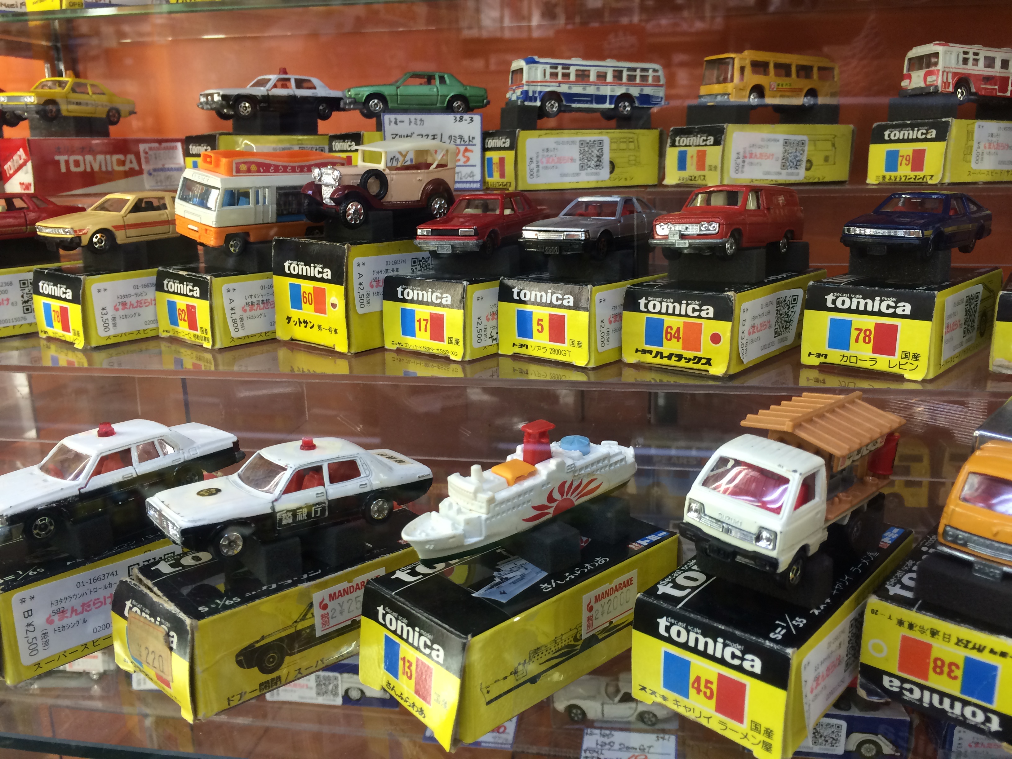 Begitu foto-foto tomica ini saya kirim ke watsap suami, dia panik gitu, langsung ga berenti-berenti ngirimin foto mobil yang dia cari.”Beliin yang truck bu..“, 2 detik kemudian, “Bu, cariin yang ini ya, yang kotak item aja soalnya limited“, trus ga lama watsap lagi, “Yang ini juga bu, liatin aja sama yang jualnya”, “Jangan yang itu, aku udah punya..yang ini aja..*photo 1 send**photo 2 send* trus sampe 20 photos” 😀 dan sampe tokonya udah tutup, dia masih terus ngirimin foto mobil tomica. Padahal dari kemaren-kemarennya tiap ditanya mau dibawain apa, jawabannya jual mahal banget: “Ga usah“. Huh! Giliran tokonya udah mau tutup dan saya besok pulang, baru deh antusias banget. Makanya lain kali ga usah jual mahal ya pak *melet*